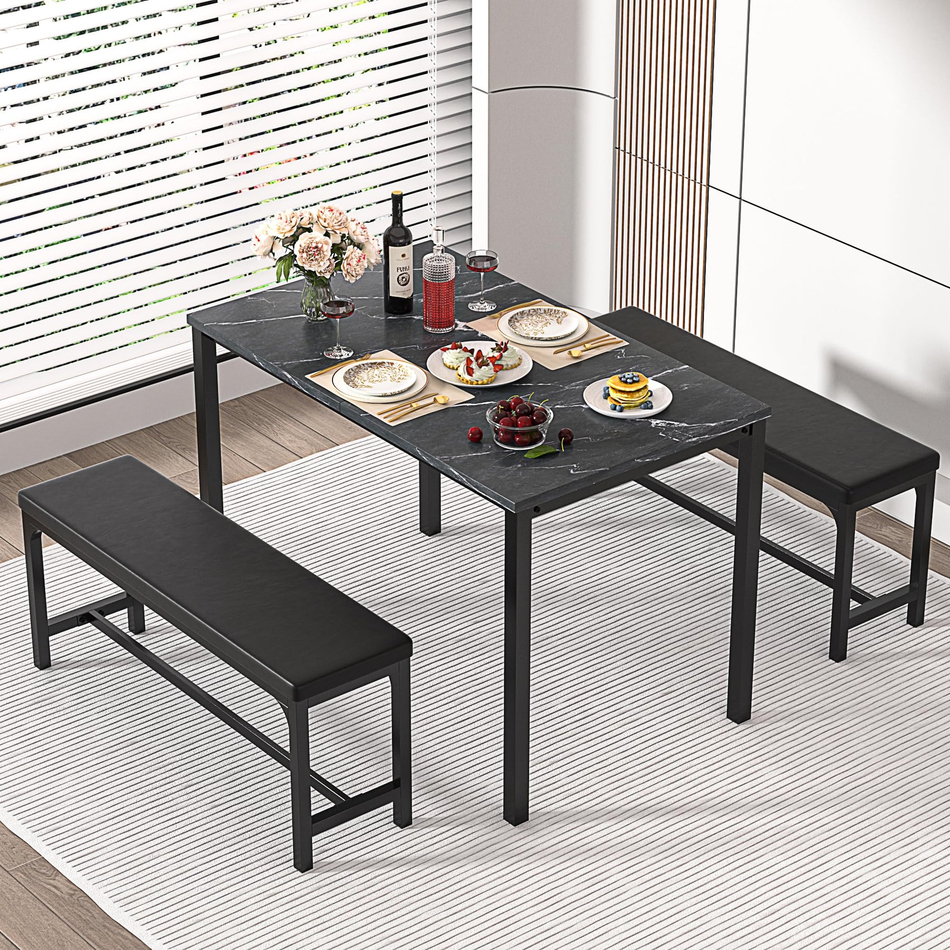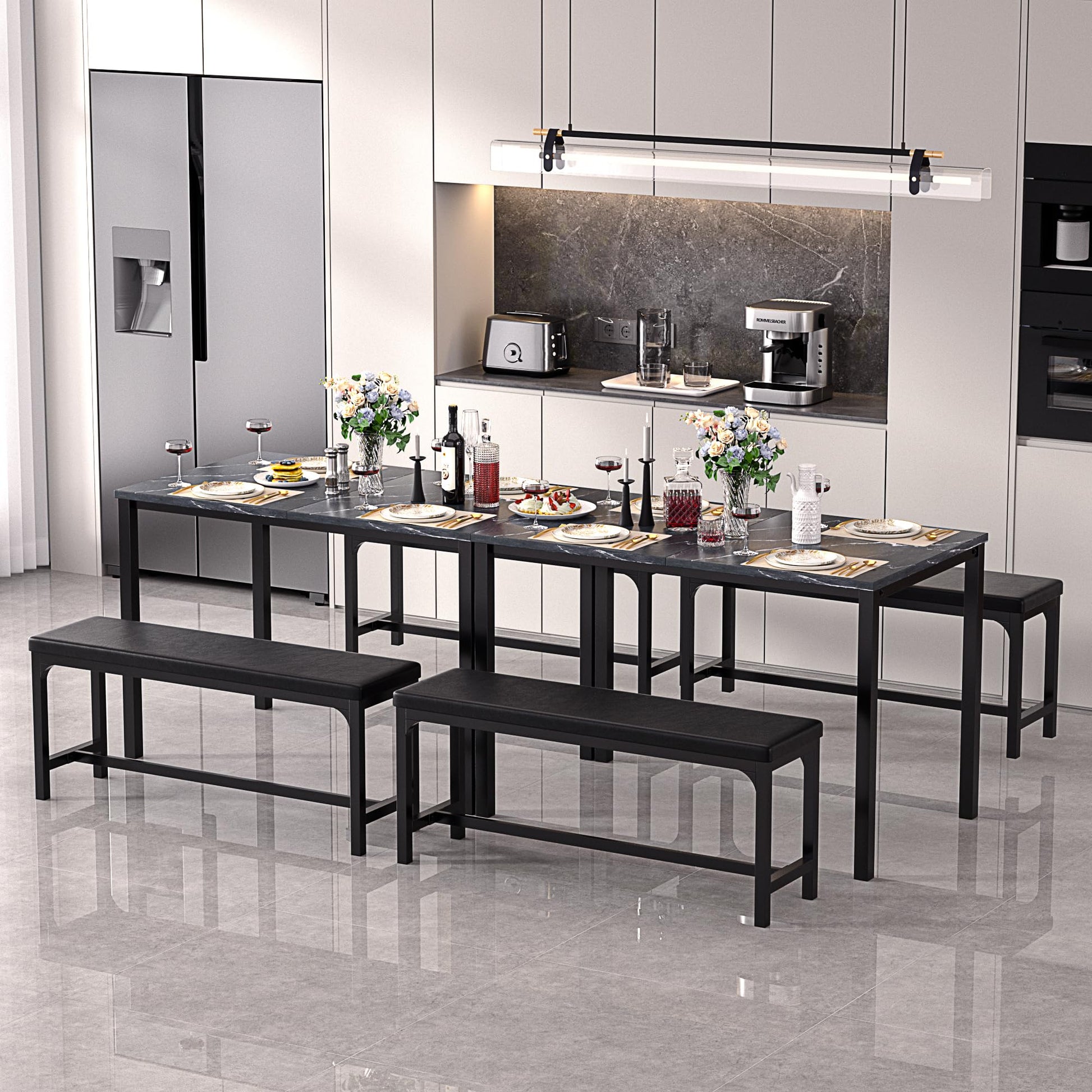 - 【Stylish Design】The expandable dining set features a simple design with woodgrain tabletop and black frame, versatile for various settings. This expandable dining table benches serve as a functional addition to kitchen, dining room, living room, office, and study room.