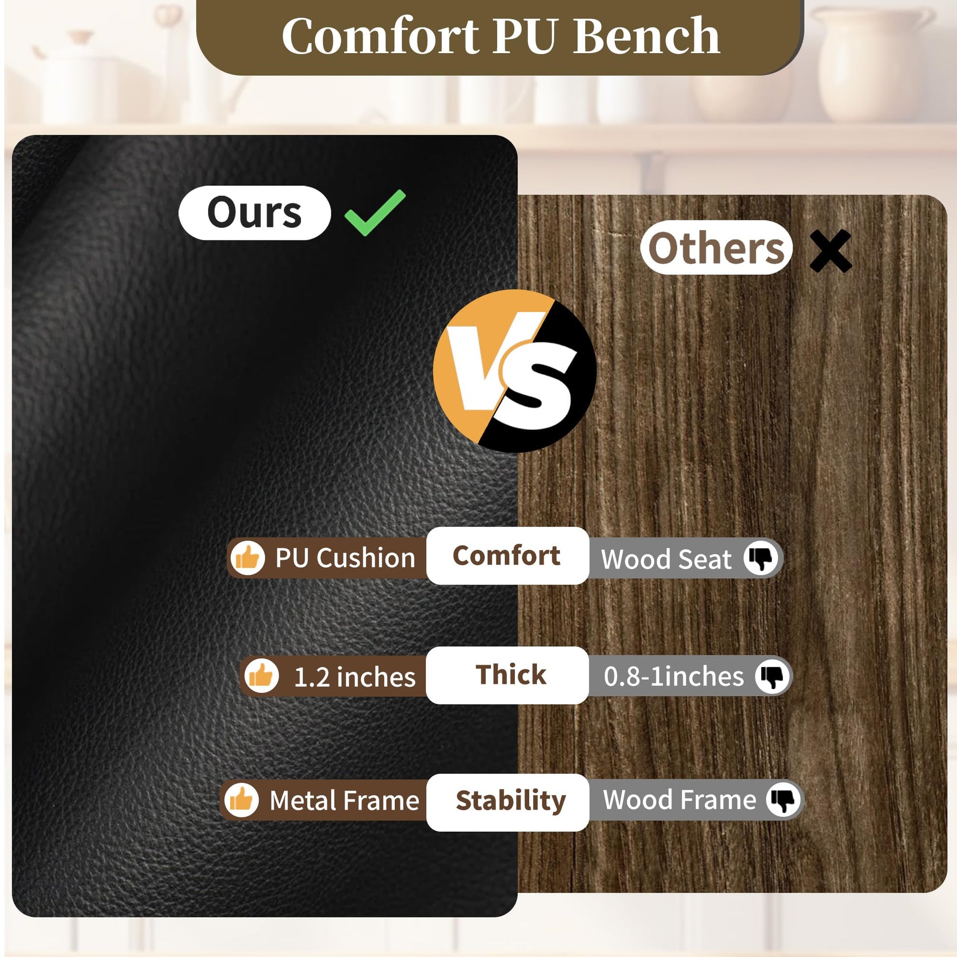 - 【Suitable for 4-6 People】Dining set includes a spacious modern breakfast area, with two benches measuring 58.5'' x 11.8'' x 17.3'', which can easily seat up to 6 people. The benches feature 1.2'' thick pure cotton PU leather cushions, providing ample and comfortable space for family gatherings or studying and working