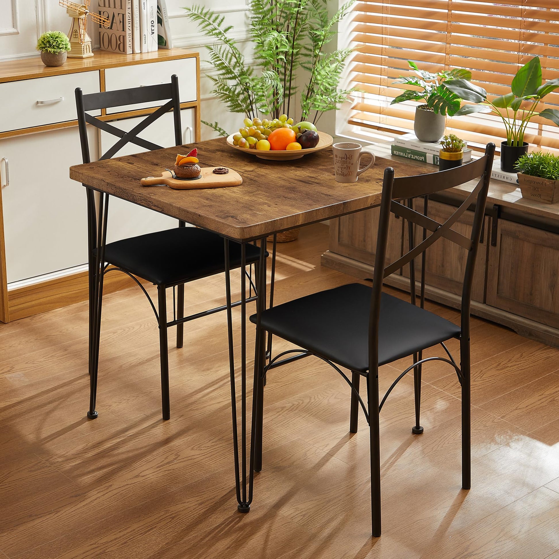 VECELO Kitchen Dining Room Table Set with 2 Chairs for Small Space, Apartment,Metal Steel Frame