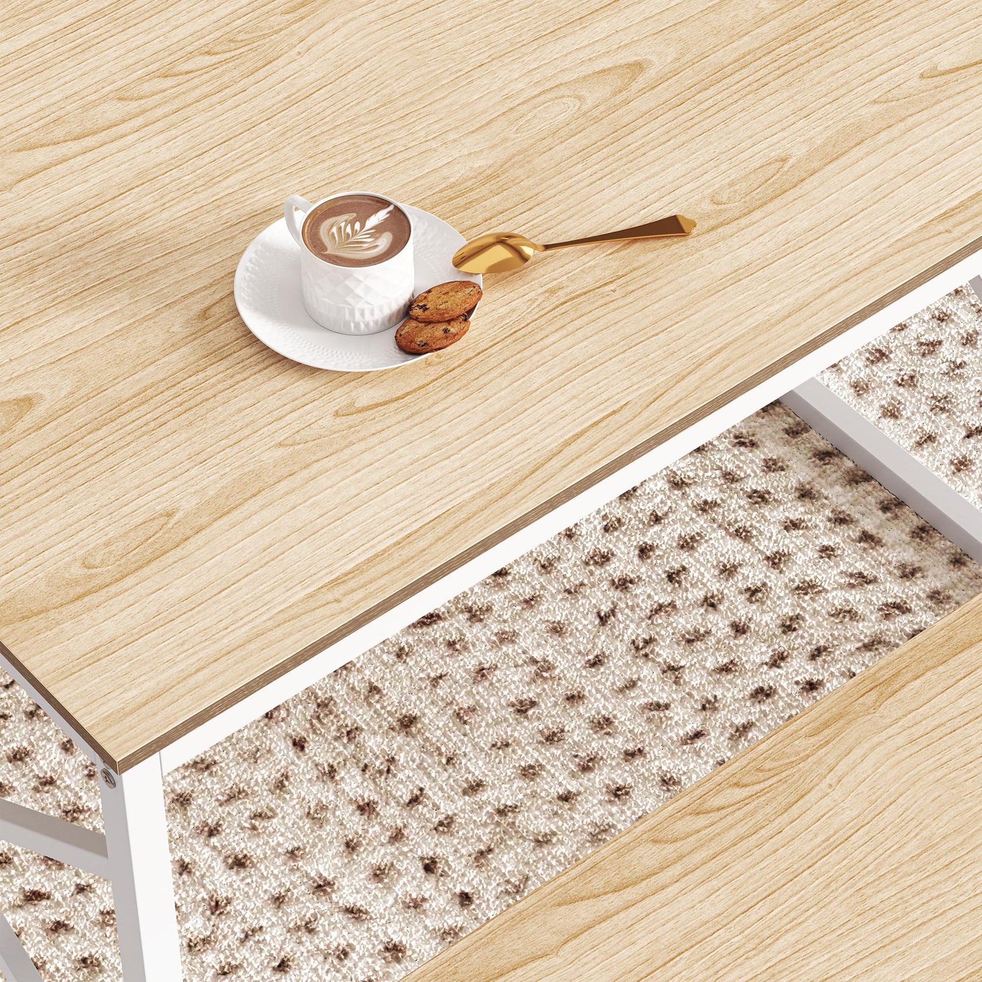 - Sturdy and Durable Design - Our kitchen table and bench are made of high-quality, thickened MDF board and steel tubes for a sturdy and durable design. The table top is waterproof and scratch-resistant, making it easy to clean and perfect for daily use. The white spray-painted frame is waterproof and anti-corrosion, ensuring long-lasting use of this table and bench set.