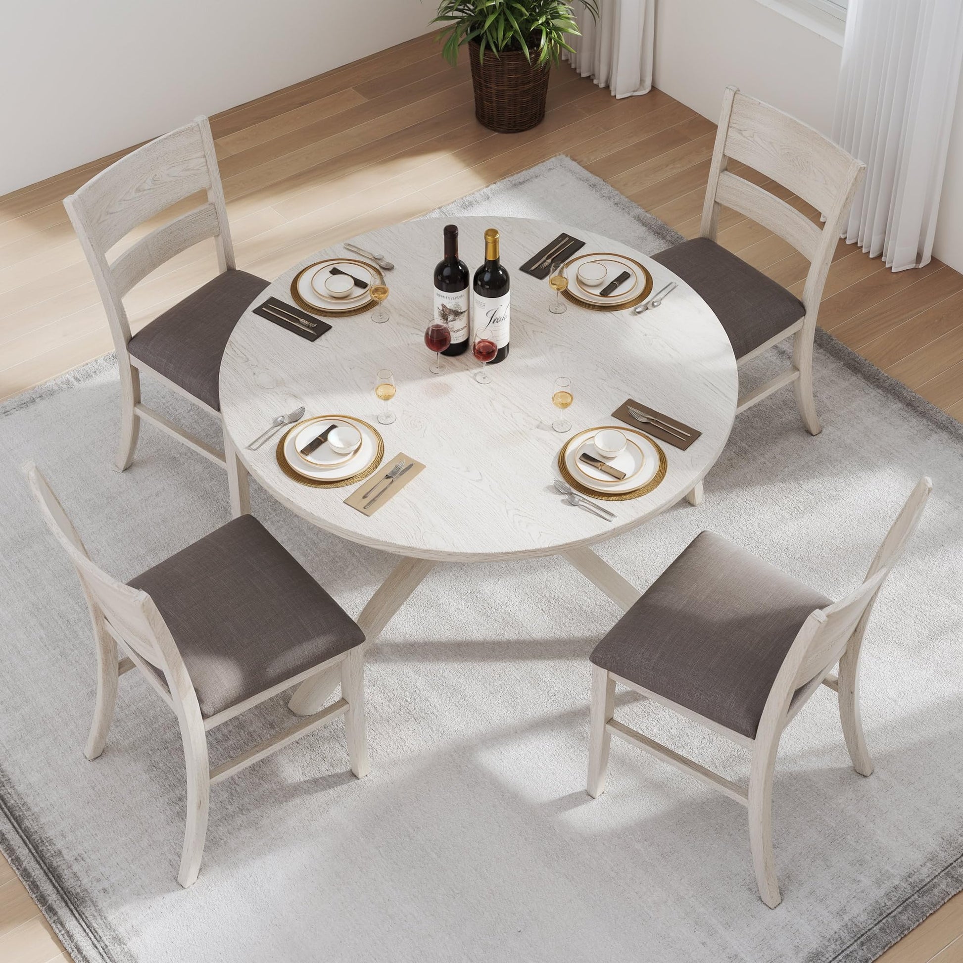 VECELO Peatuk 4-Piece Solid Wood Dining Table Set for 4-6, Modern Breakfast Dinette Kitchen Table with Chairs for Dining Room, Kitchen, Grey
