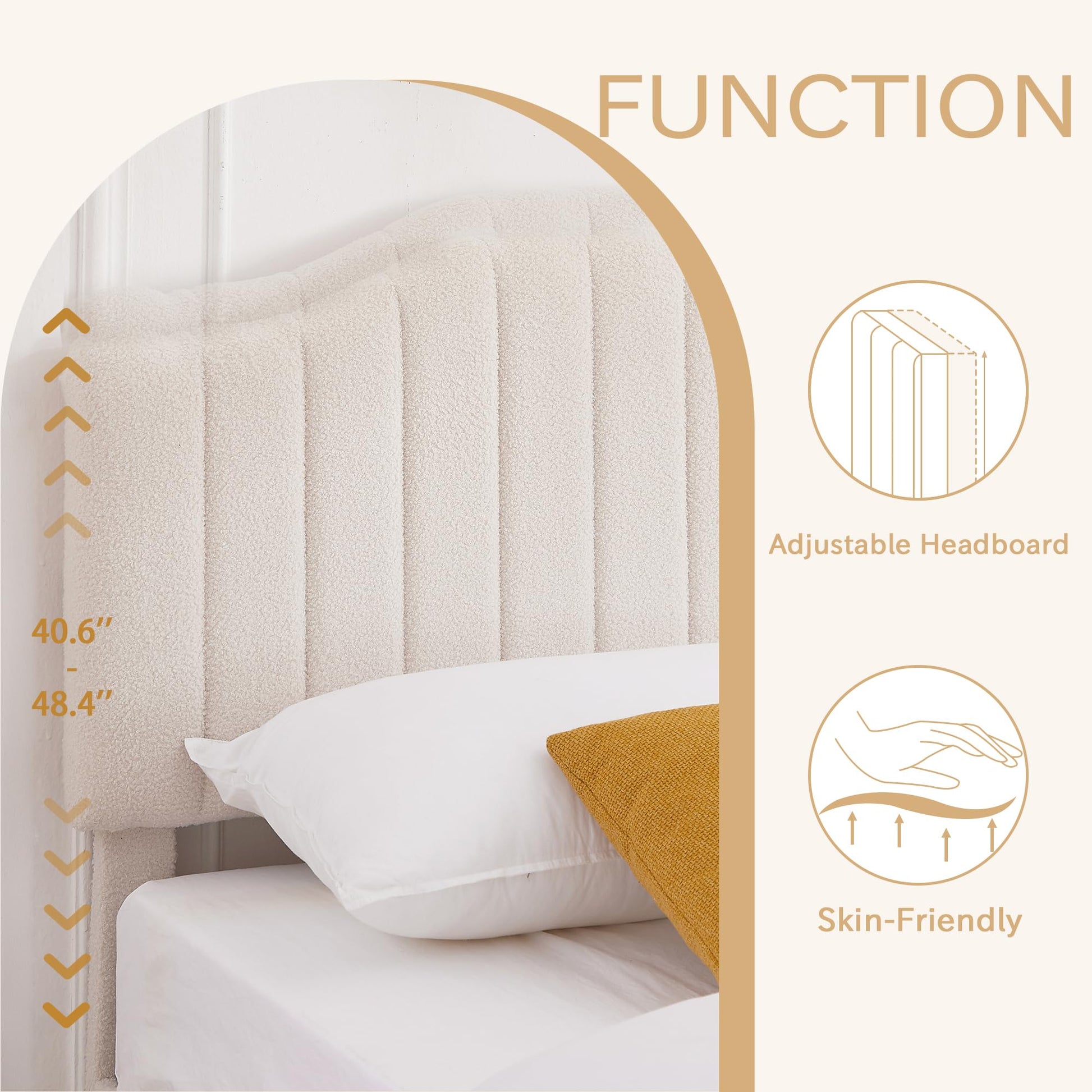 VECELO Twin Bed Frame Upholstered Platform Bed Frame with Height Adjustable Teddy Fabric Headboard, Strong Wood Slats Supports 7.9'' Under Bed Space Noise Free No Box Spring Needed, Cream