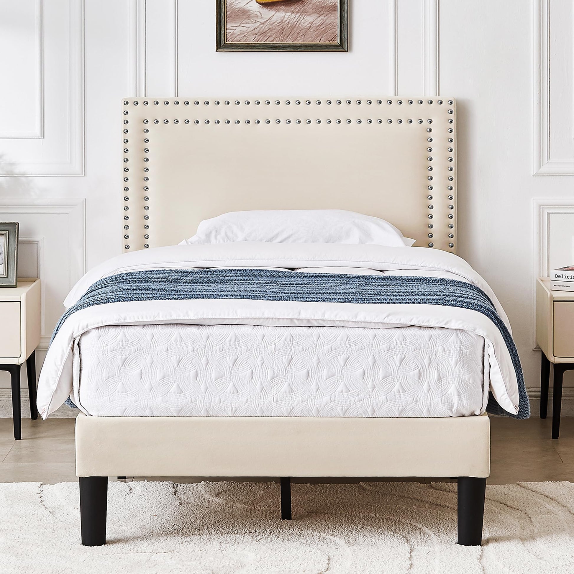 - Elegant Velvet Upholstery with Nailhead Trim: This twin bed frame adds a touch of luxury to your bedroom with soft velvet upholstery and chic silver nailhead trim, making it a stylish centerpiece for any decor.