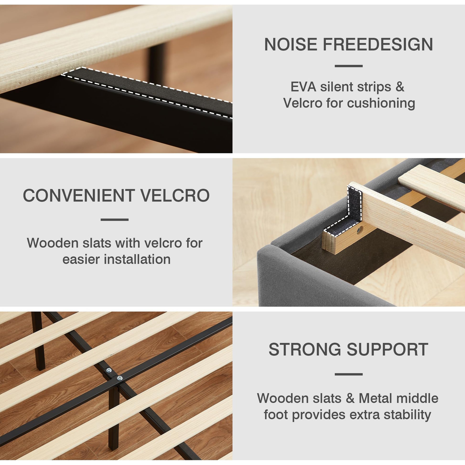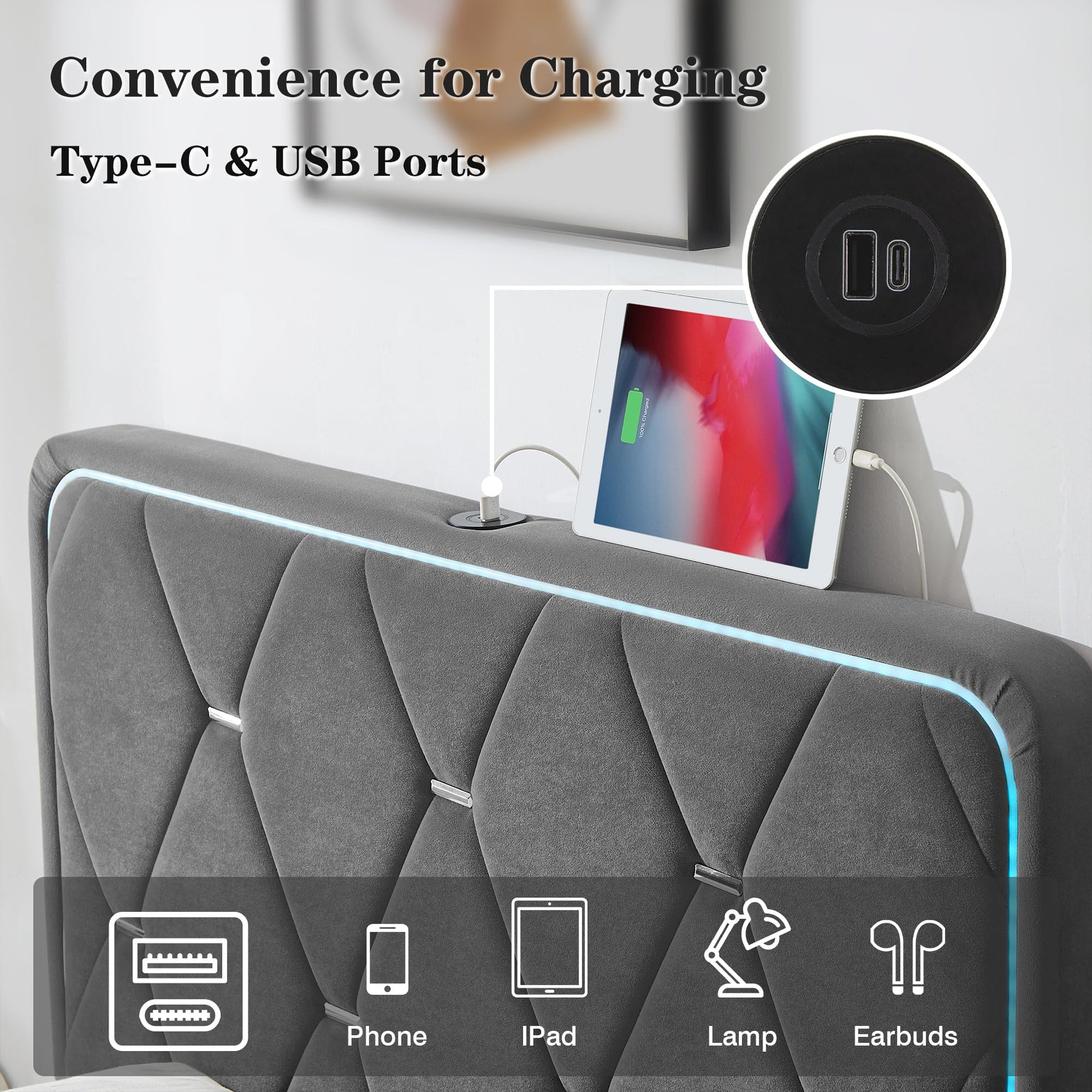- LED-Lit: Upgrade your bedroom with our stylish dark grey led bed frame. Enjoy customizable LED lights with 7 colors, adjustable brightness, and various modes controlled via switch, remote or smartphone app. Set the perfect mood for any occasion.