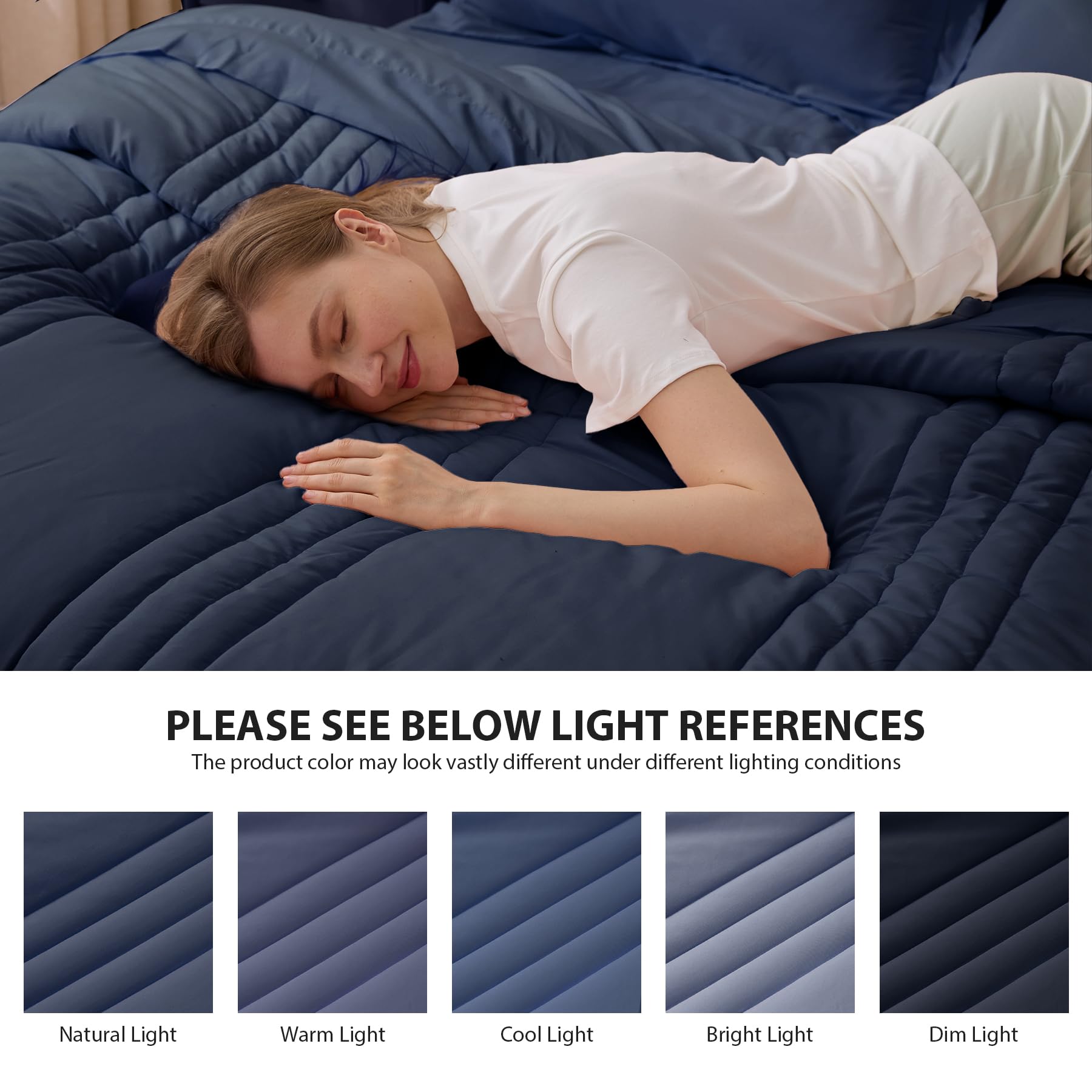 Velorose Queen Comforter Set Navy - Bed in a Bag Queen Size 7 Pieces, Soft Bedding Set for All Seasons, Premium Queen Comforter Set with Comforter, Sheets, Pillowcases & Shams