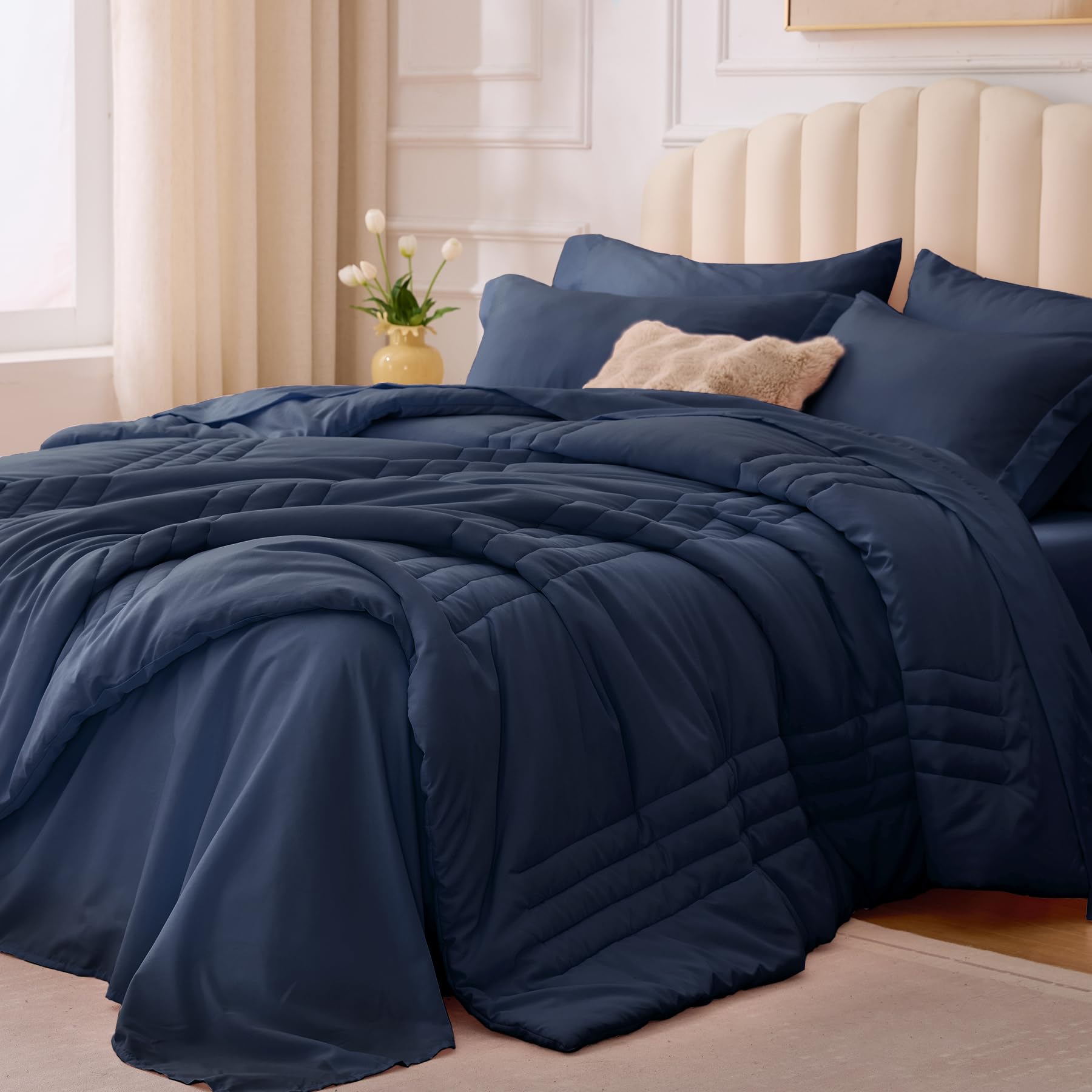 - 【7-PIECE QUEEN BED IN A BAG SET】1 Comforter (88'x88'), 2 Pillow Shams (20'x26'), 1 Flat Sheet (90'x102'), 1 Fitted Sheet (60'x80'+14'), 2 Pillowcases (20'x30'). Available in 7 colors-ideal for those who love simplicity and clean aesthetics. A perfect queen bed comforter set for gifting on Mother’s Day, Valentine’s Day, or Christmas