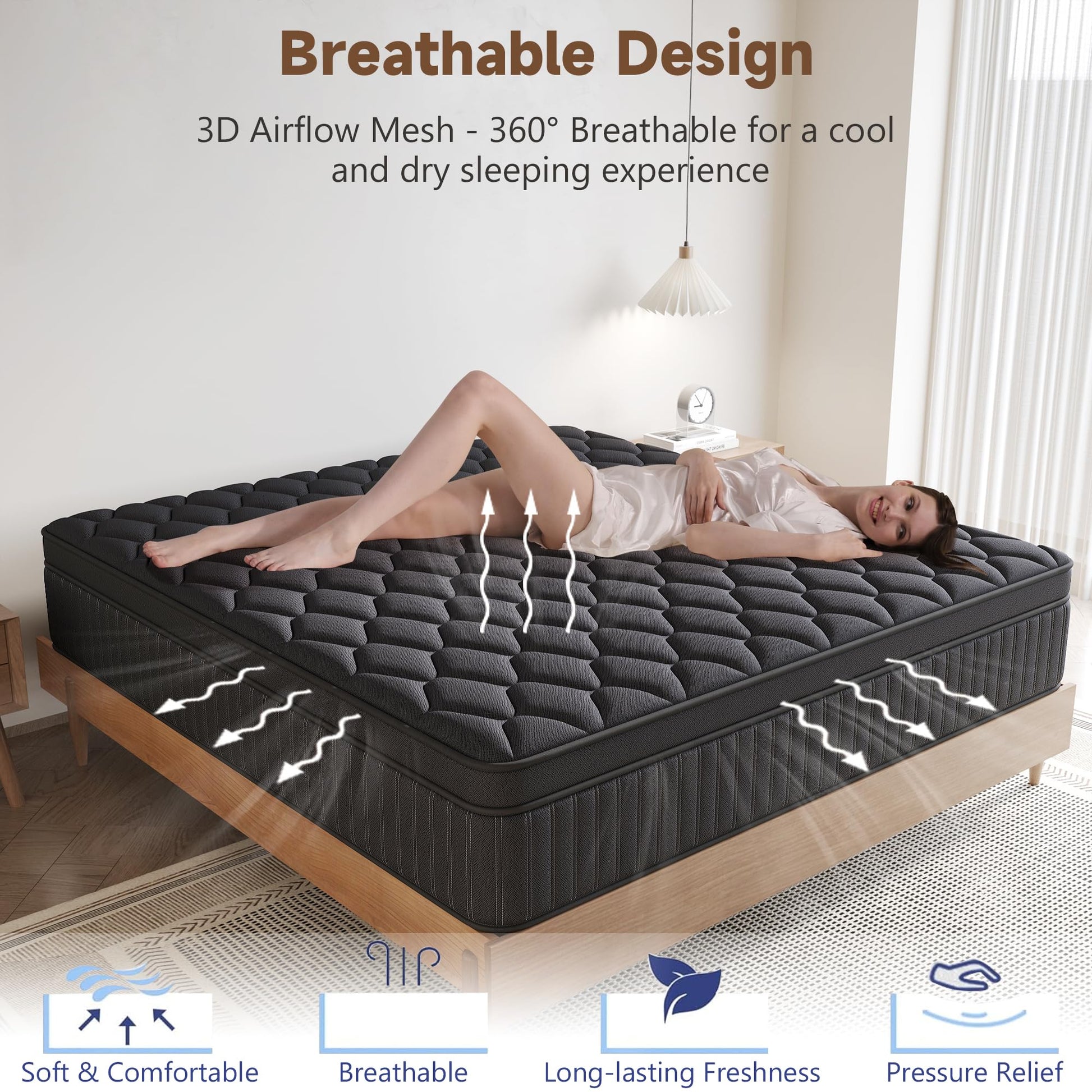 - Ergonomic Design for Healthier Sleep - Our hybrid mattress queen are ergonomically designed, consists of multiple layers of high-quality memory foam and enhanced Independent Pocket Springs, With superior comfort and targeted support, it can fully care for your body curves, relax your muscles in 360°, relieves stress and back pain for truly restful sleep.