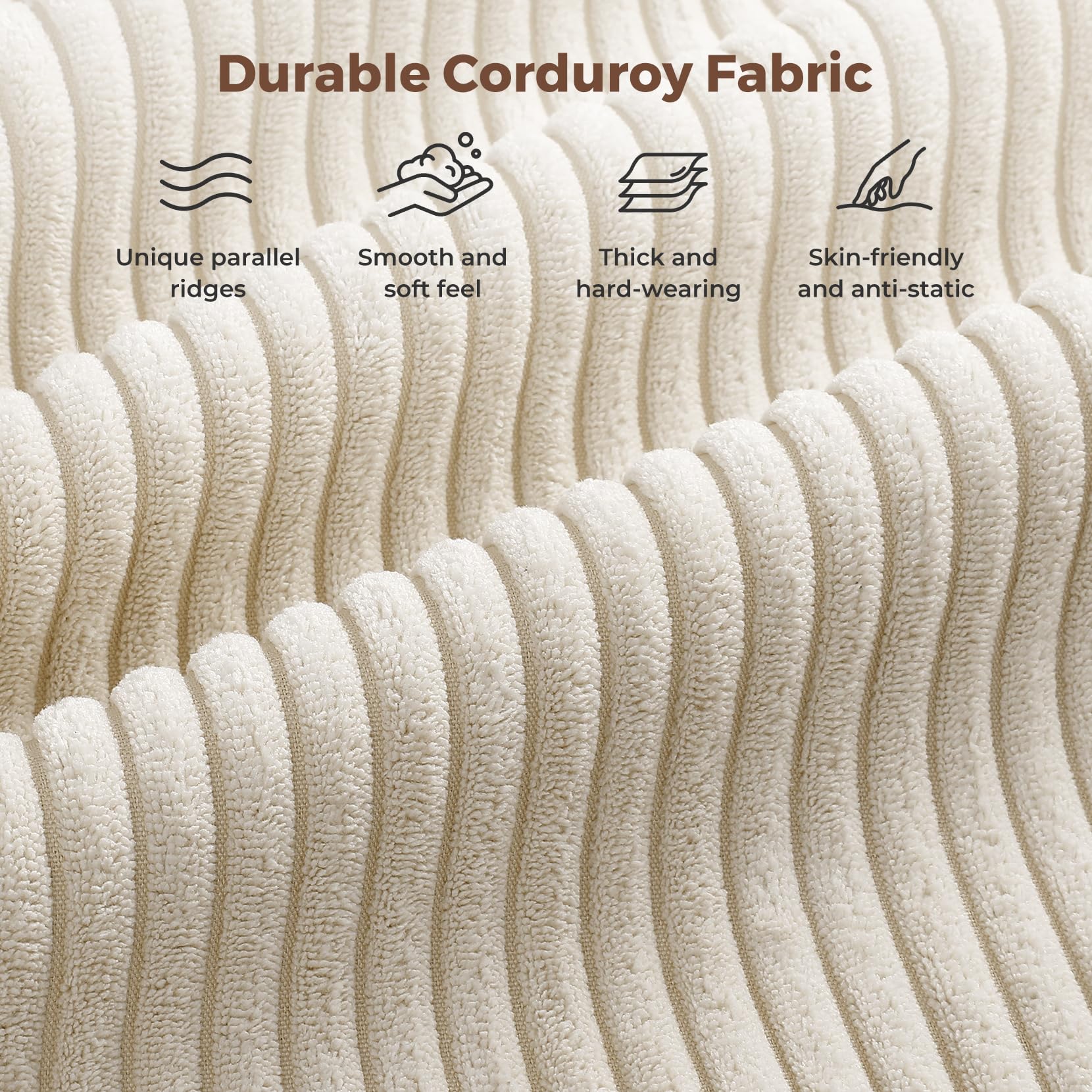 - Durable Corduroy Fabric - This corduroy sofa couch has a unique pattern and texture, characterised by parallel ridges that give it a smooth and soft feel. The modern couch has a clear and rounded velvet-like surface, which adds to its luxurious appearance. Additionally, sectional couch is thick and wear-resistant, making it an excellent choice for those who demand comfort and durability