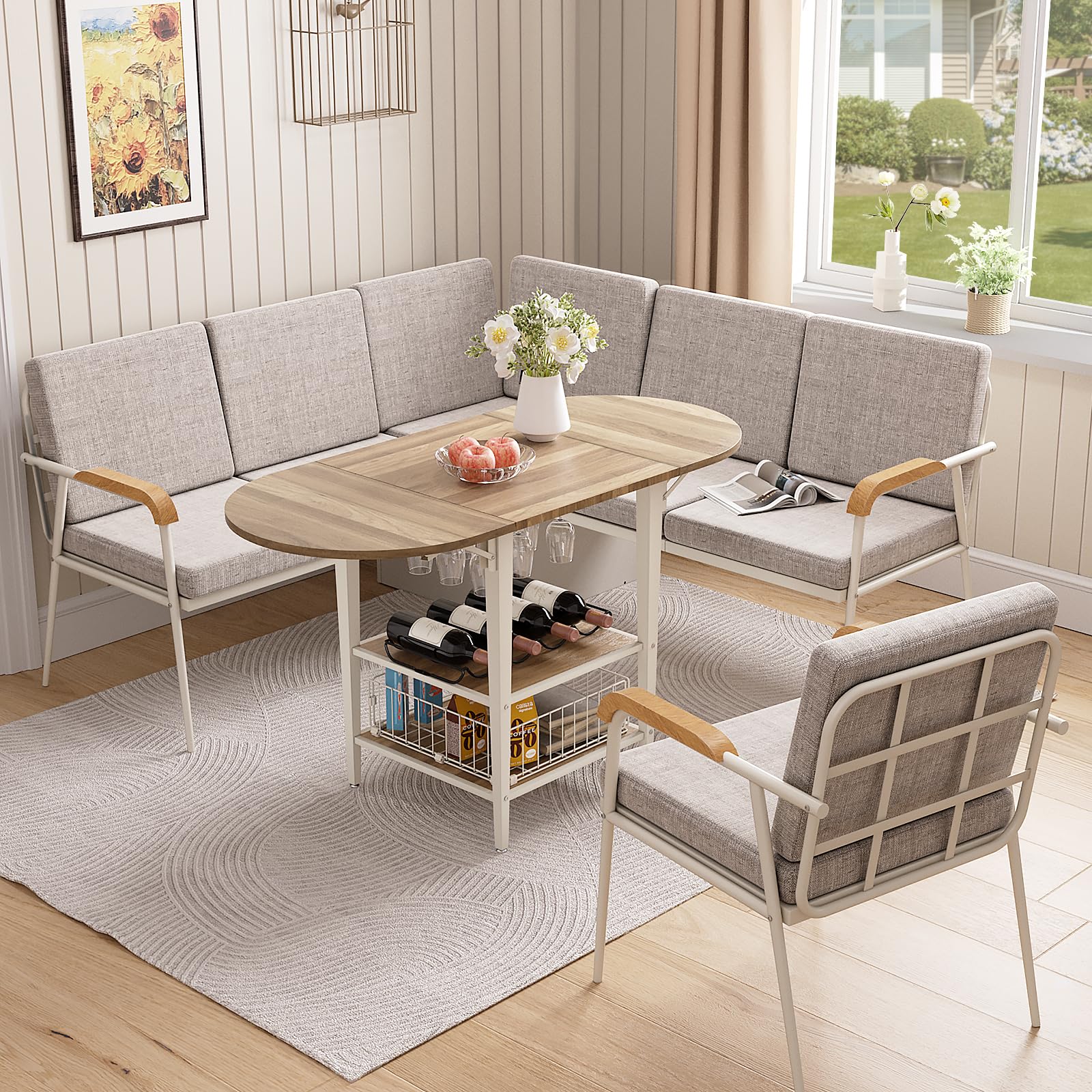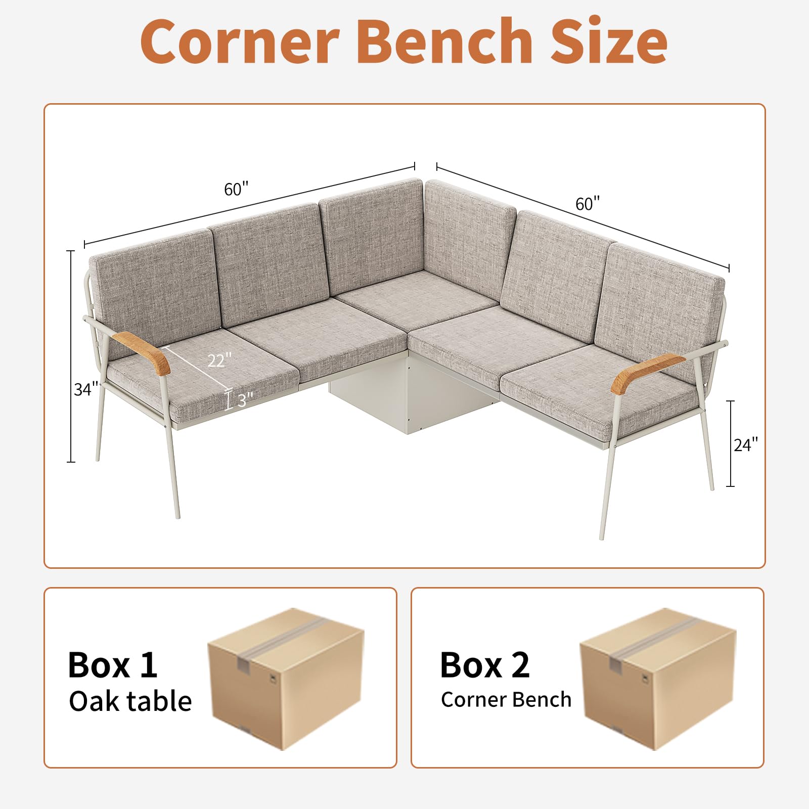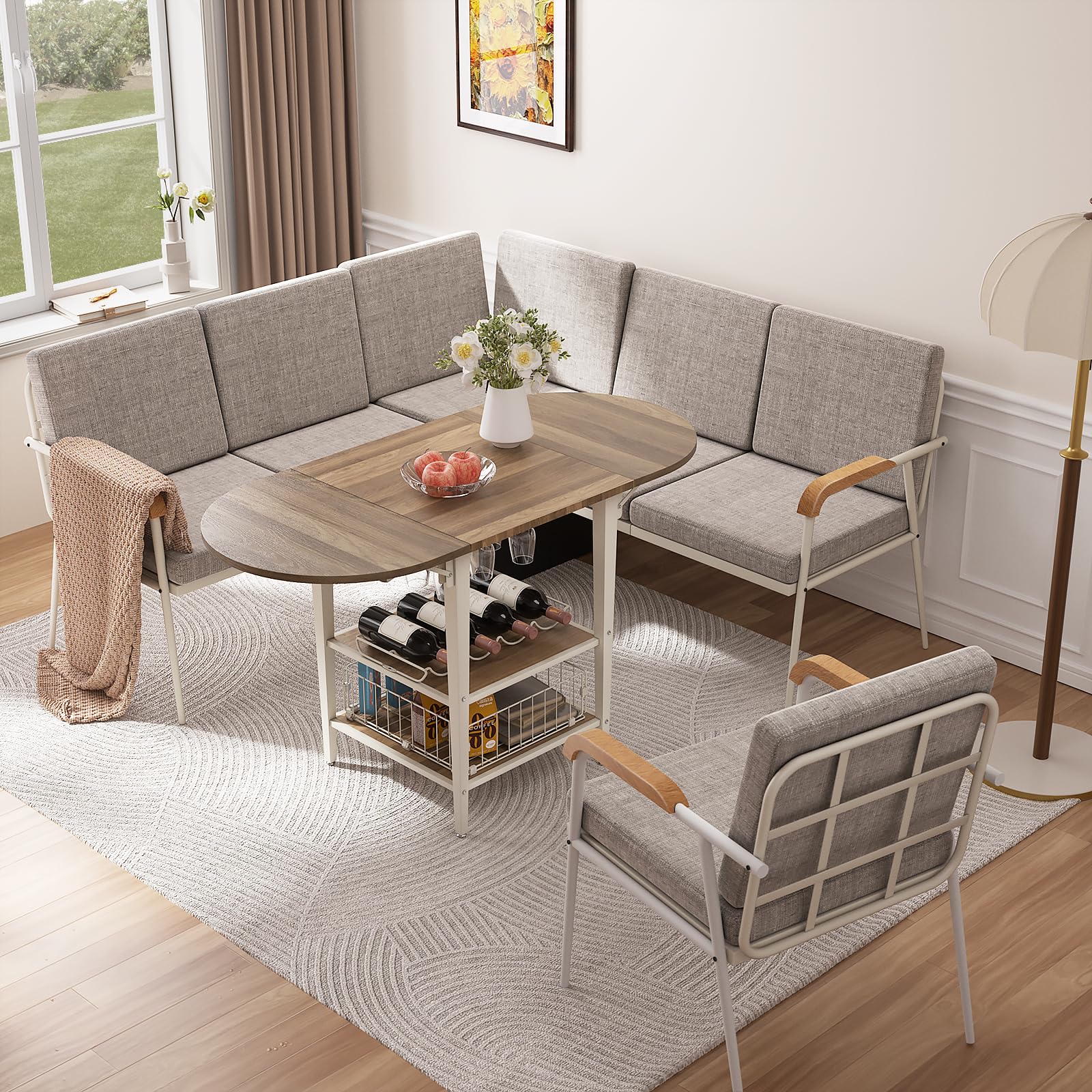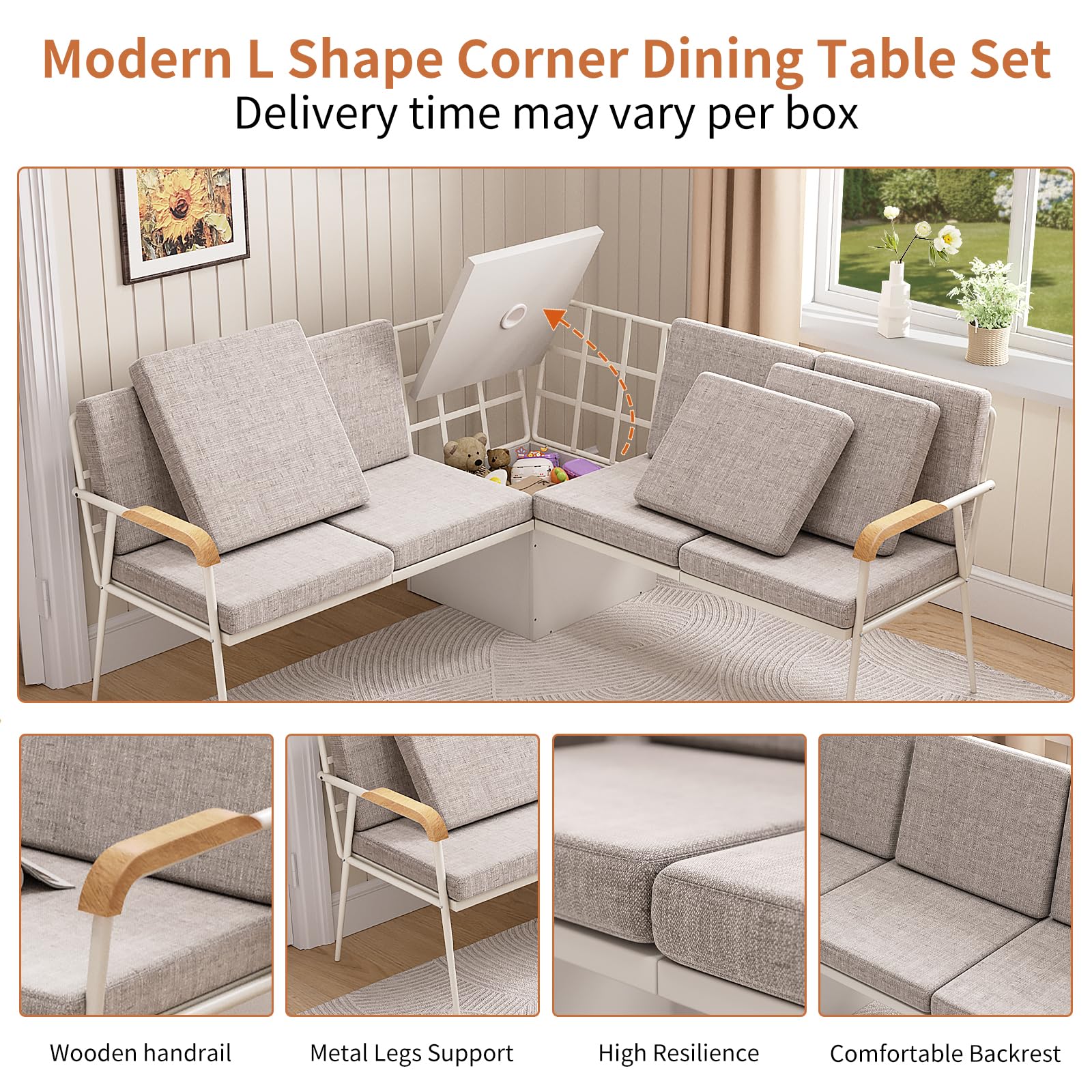 - 【Space-Saving Layout for Small Apartments & Cozy Spaces】Maximize space with this corner dining table set, perfect for studio apartments, small kitchens, or breakfast nooks. The space-saving corner configuration allows for better room flow, while the built-in storage shelves and hidden bench compartment replace bulky cabinets. The upholstered bench comfortably seats two adults, making it ideal for brunch, casual dining, or as a cozy reading nook by the window.