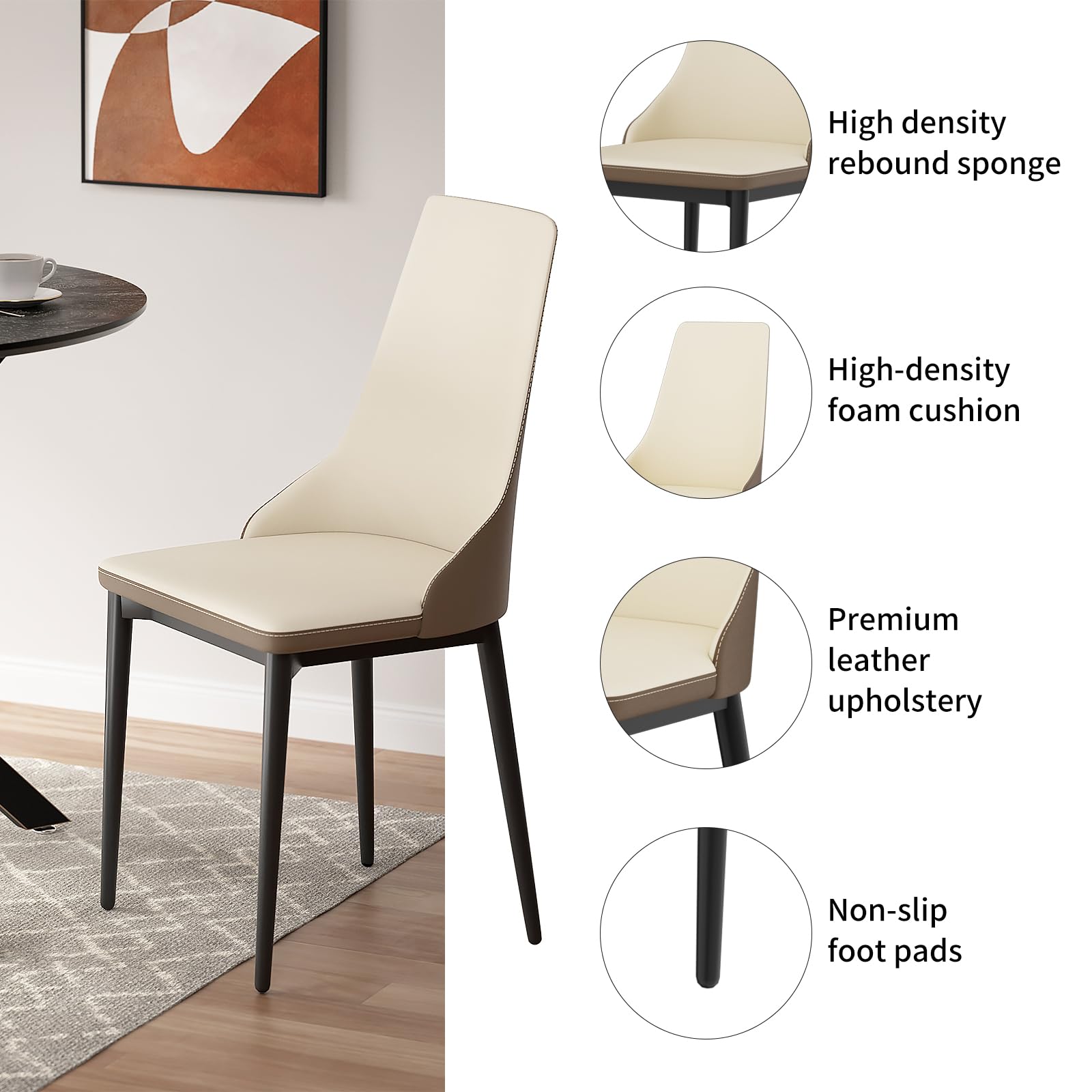 - 【Ergonomic dining chairs】:This kitchen table is equipped with 4 dining chairs, made of durable leather material, combined with high-density sponge cushions and backrests, providing comfortable elasticity and support. The ergonomically designed high backrest effectively supports the back, allowing you to stay comfortable even for long meals.