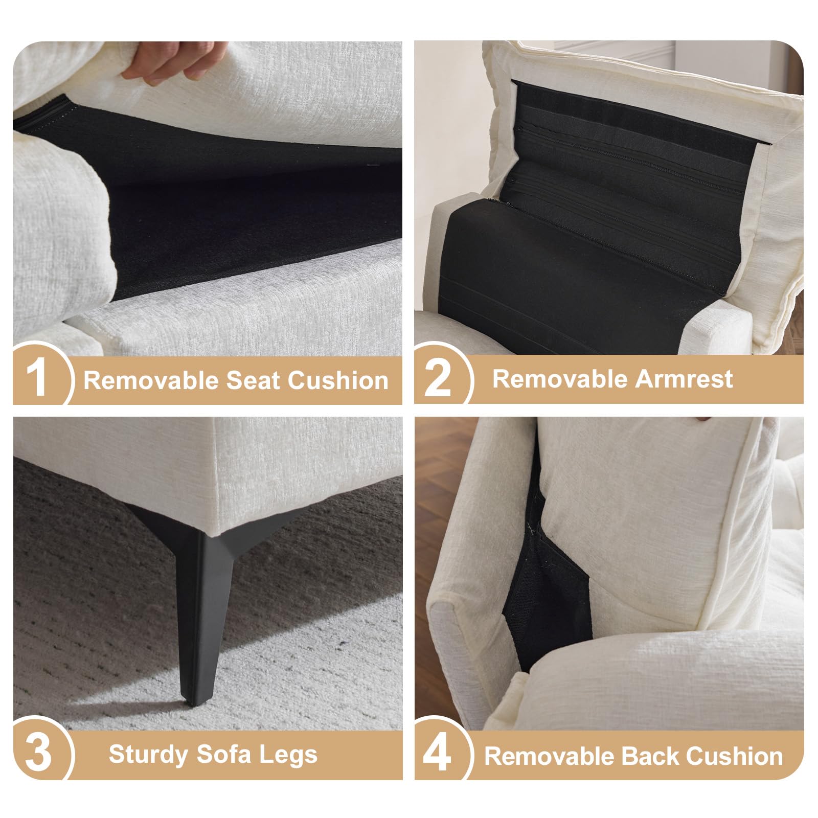Details: Experience ultimate comfort with our dual-layer cloud cushions (high-resilience foam + plush topping) wrapped in premium chenille fabric. The 3-piece modular design lets you switch the chaise left/right and reconfigure removable cushions for any space. Enjoy customized support with adjustable armrests perfect for naps, work, or movie nights. Designed for families, this extra-wide 129' L-shape comfortably seats 4+ adults with its reinforced hardwood frame (100LB capacity/seat) and high-density cushions. Ideal for tall users, entertaining, and different spaces - available in multiple colors to match your decor.