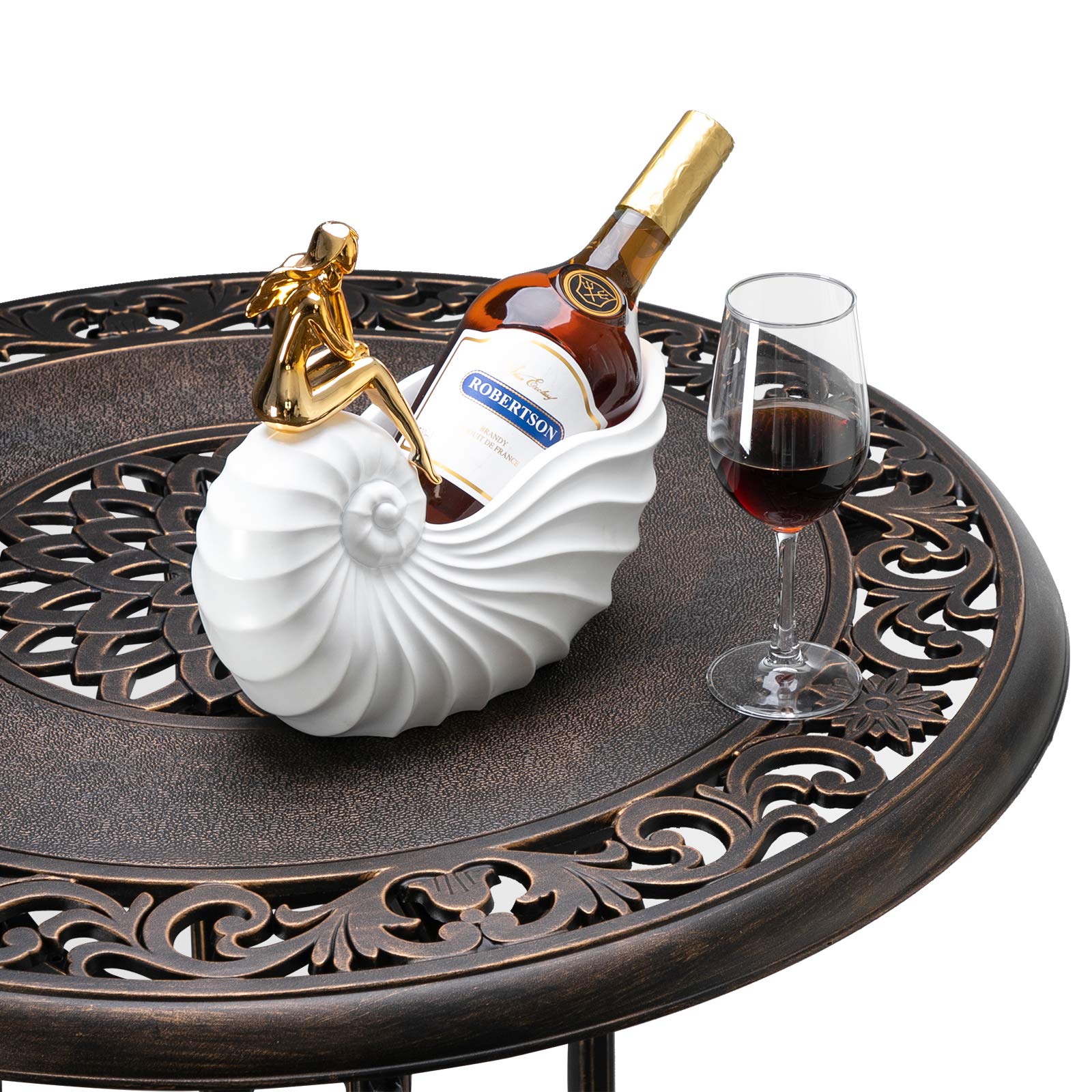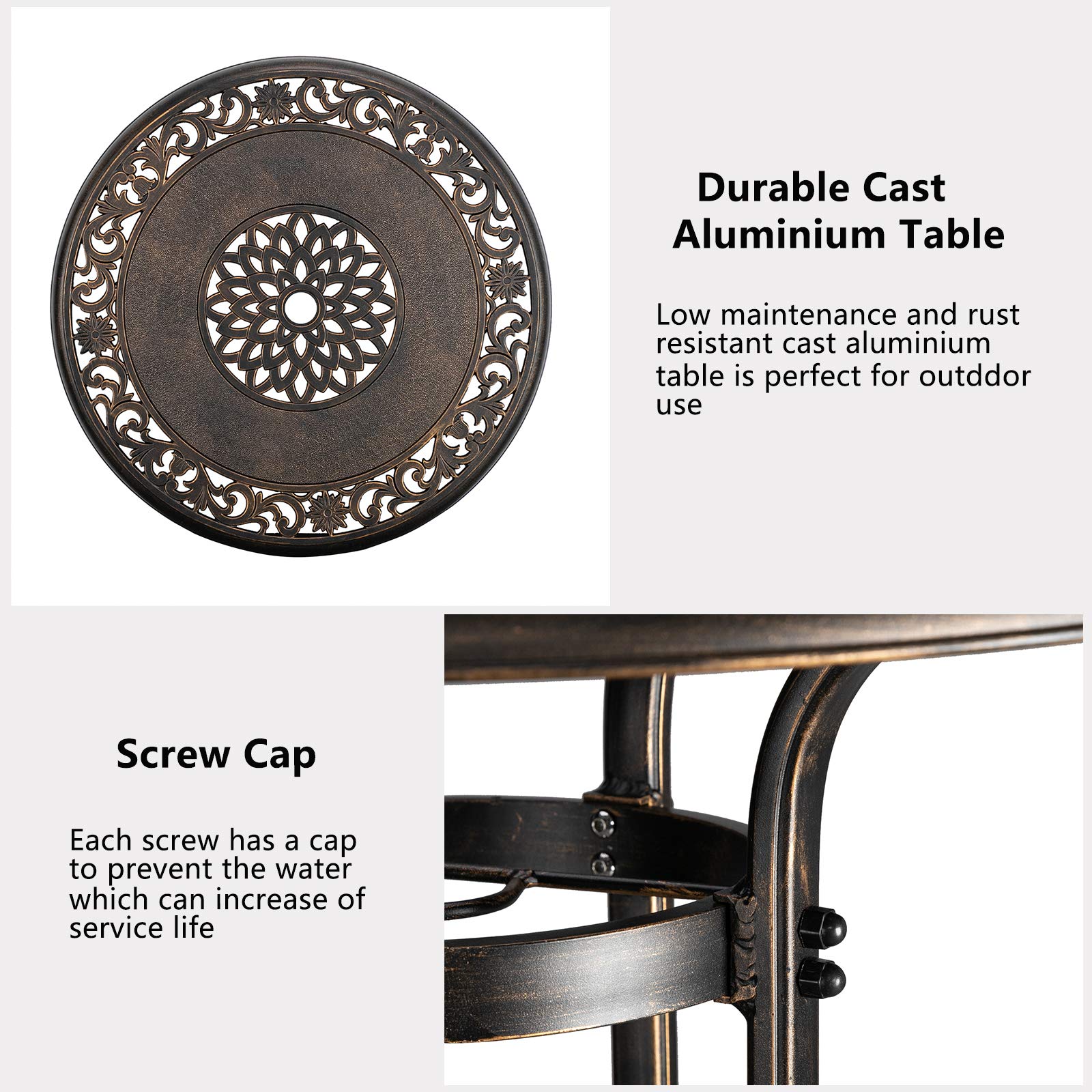 - Stable Bistro Table with Umbrella Hole: Round cast aluminum table features a 2' umbrella hole for shade and adjustable legs for stability