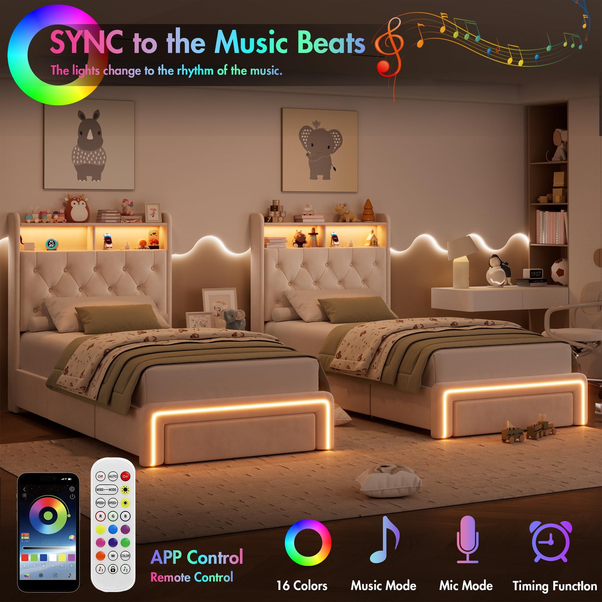 - Ambient RGB Lighting: Create the perfect atmosphere with built-in RGB LED lighting, seamlessly integrated into the bed frame. Customize colors, brightness, and lighting modes through the mobile app to match your mood or style. Whether relaxing, reading, or entertaining, set the vibe with vibrant, adjustable illumination
