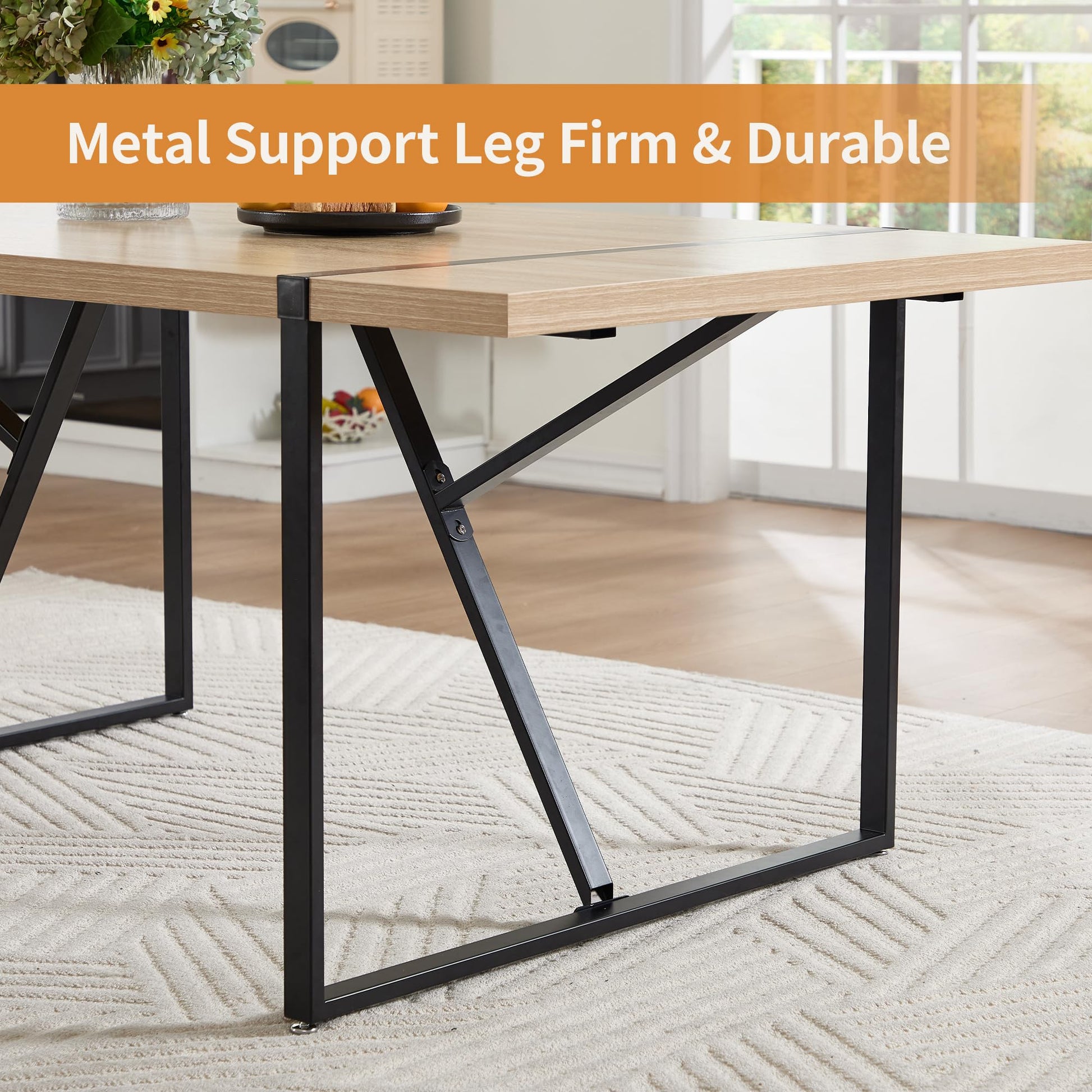 VipDesk 70.8" × 39.4" Farmhouse Dining Table for 6 to 8, Rectangular Dinner Table with Sturdy Metal Frame for Kitchen Dining Room Living Room - Natural Wood