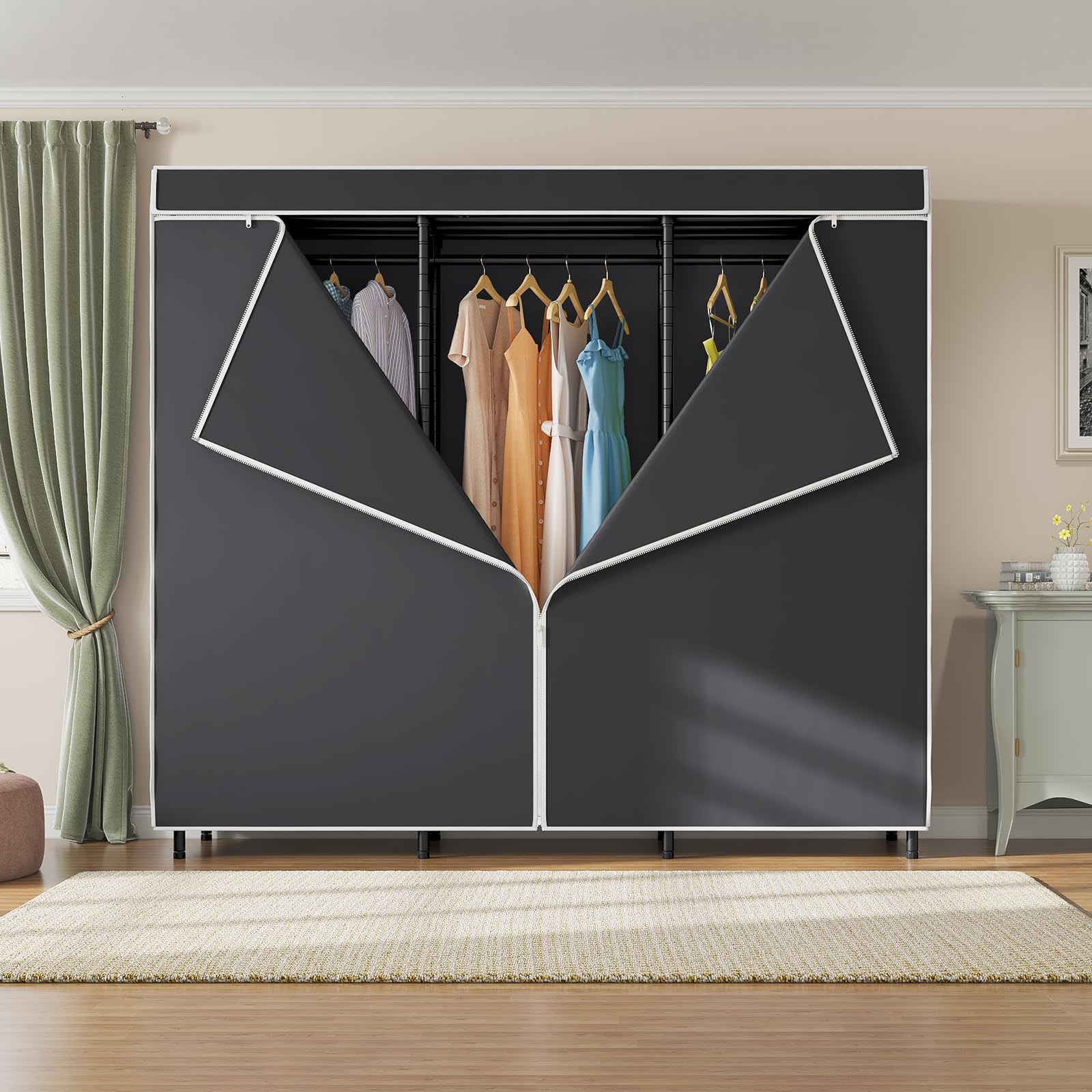 - PROTECTIVE FABRIC COVER: The included black upgraded polyester fabric cover provides a stylish and protective barrier for your clothes. It keeps them dust-free, protected from moisture, and offers privacy while maintaining a neat appearance.