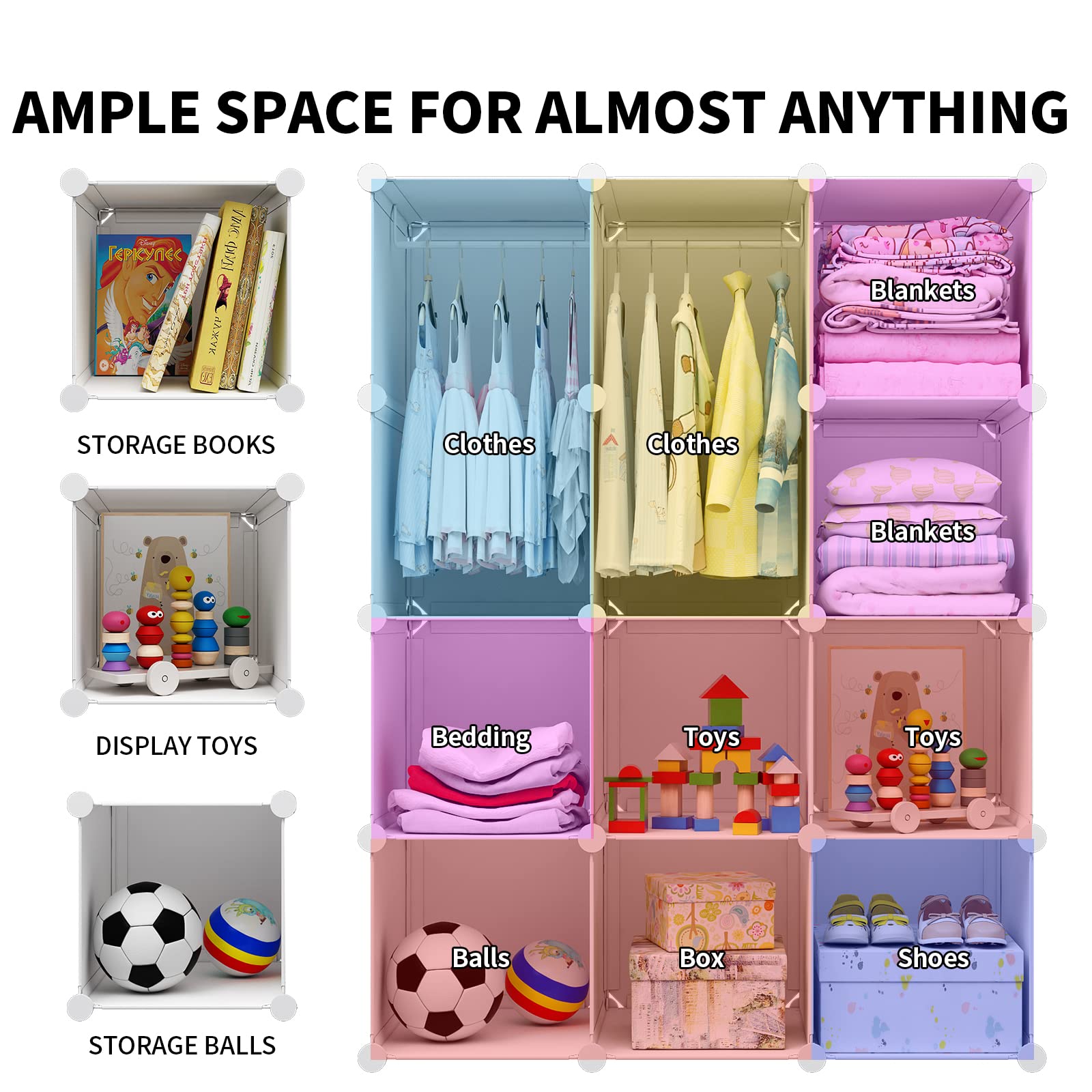 VIPZONE Baby Closet,Dresser, Kids Closet Organizers, Portable Kids Wardrobe for Closet, Bedroom, Nursery, Cubby, Cabinet, Clothes, Dress, Baby Storage Shelf, Armoire Clothes Hanging (12 Cube, White)