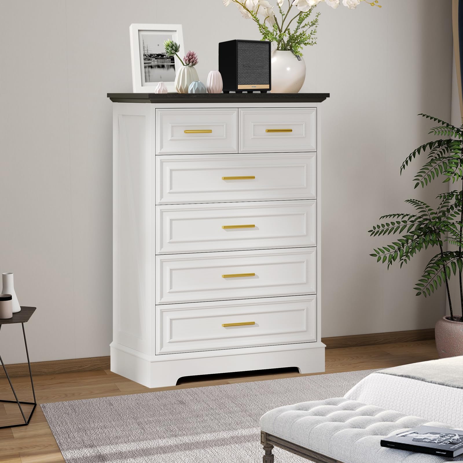 - Anti-Tipping & Elegant Modern Design: Our tall white dresser with anti-topping device, that makes it more stable when in use. Our 6 drawer wardrobe dressers feature a sleek, modern design with clean, crisp lines that will effortlessly enhance the décor of any room. Its sophisticated aesthetic not only adds a touch of elegance to your space, but also blends perfectly with a variety of interior styles.