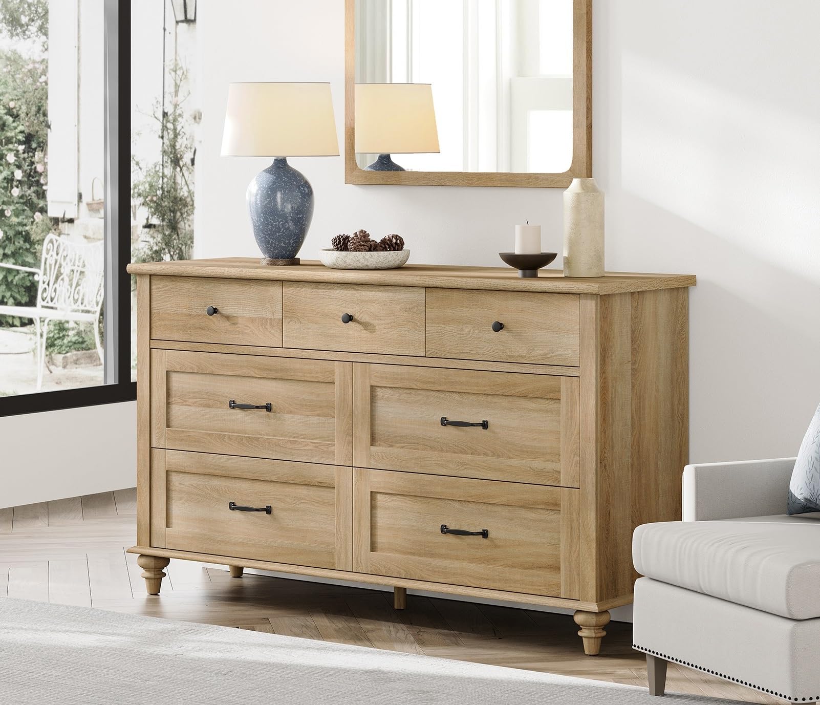 - 【Multi-purpose Dresser】The oak dresser with distressed surface and natural texture is a perfect combination of retro and mid century style, adding character and charm to your home. It can be used as a bedroom dresser, kids dresser, nursery dresser, entryway table or TV stand for 60' TV.