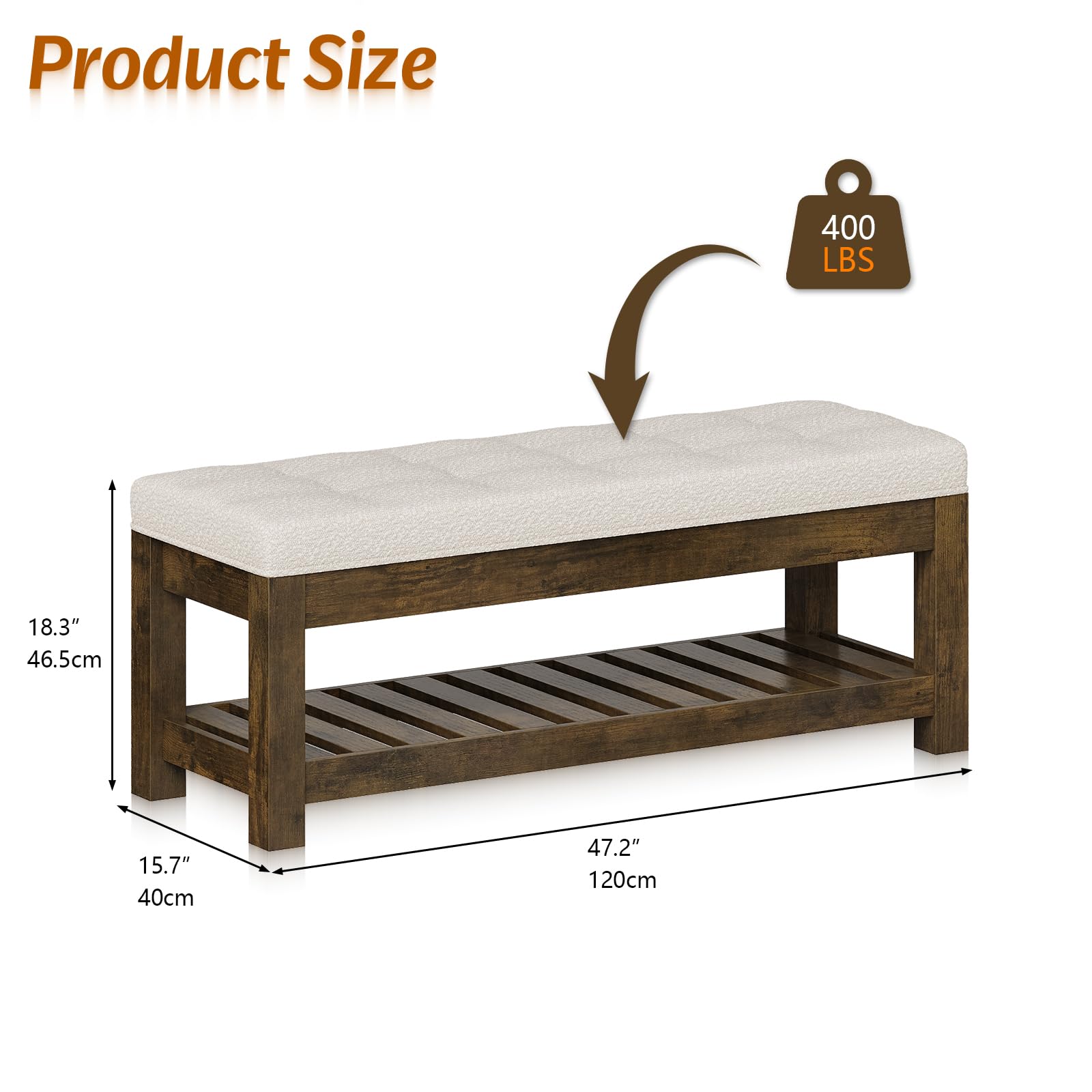 Welfuturer Large Upholstered Ottoman Bench Entryway Storage Benches Tufted Linen Ottoman Bench with Solid Wood Shelf Padded End of Bed Bench for Bedroom Living Room Hallway Decor