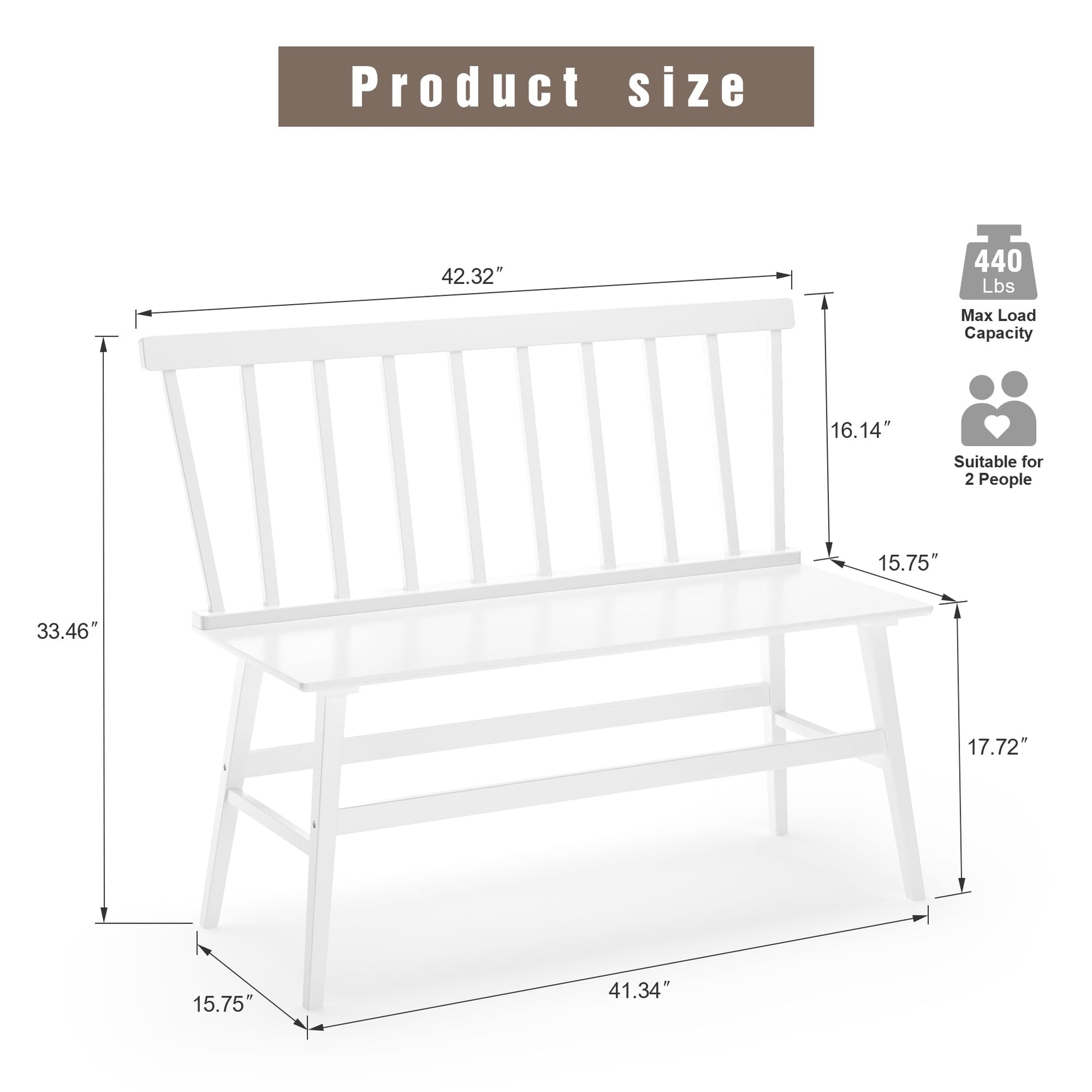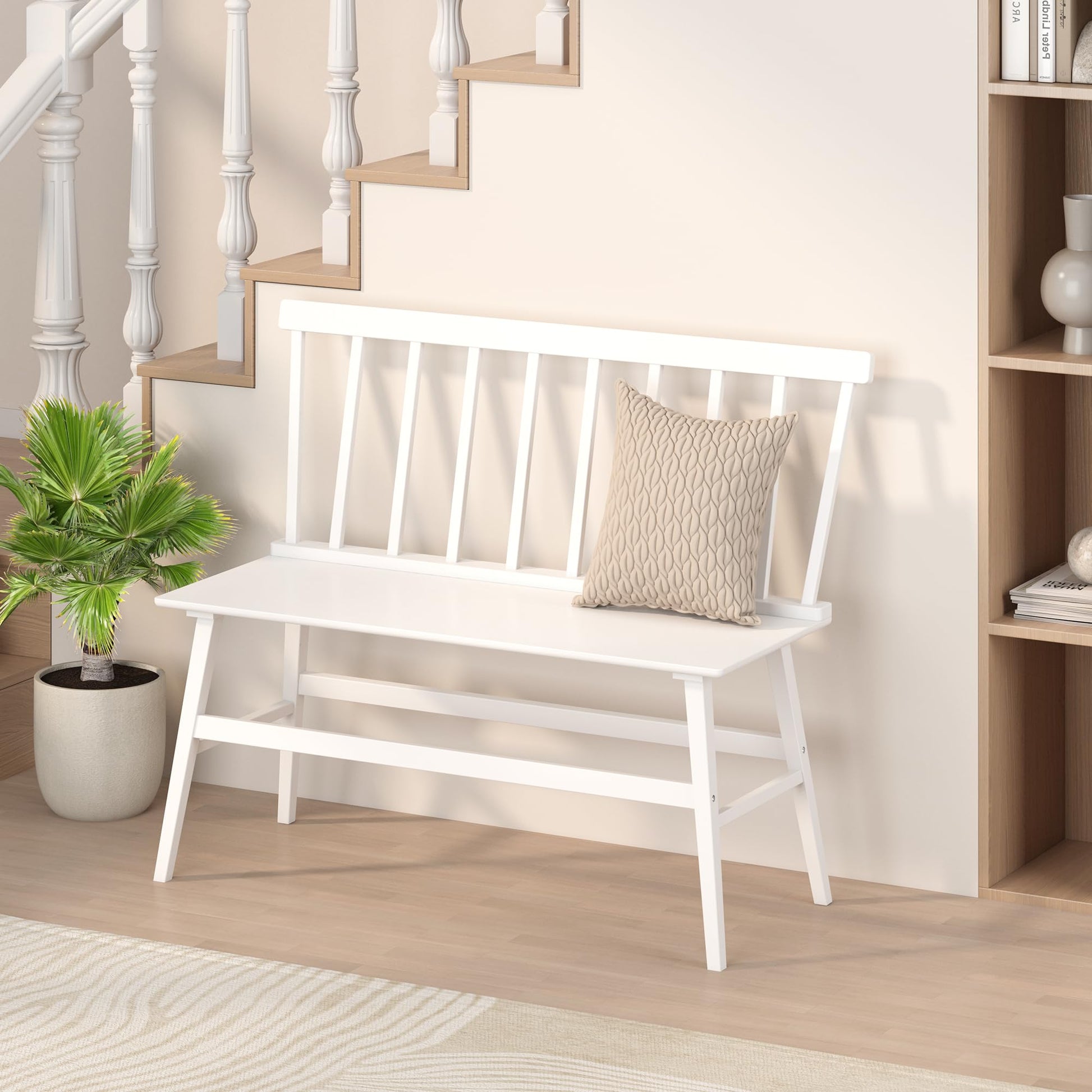 - Armless Design with Spindle Back:The bench features a classic spindle backrest, providing both comfort and an elegant, timeless look. The slight backward tilt of the backrest ensures a relaxed seating experience.