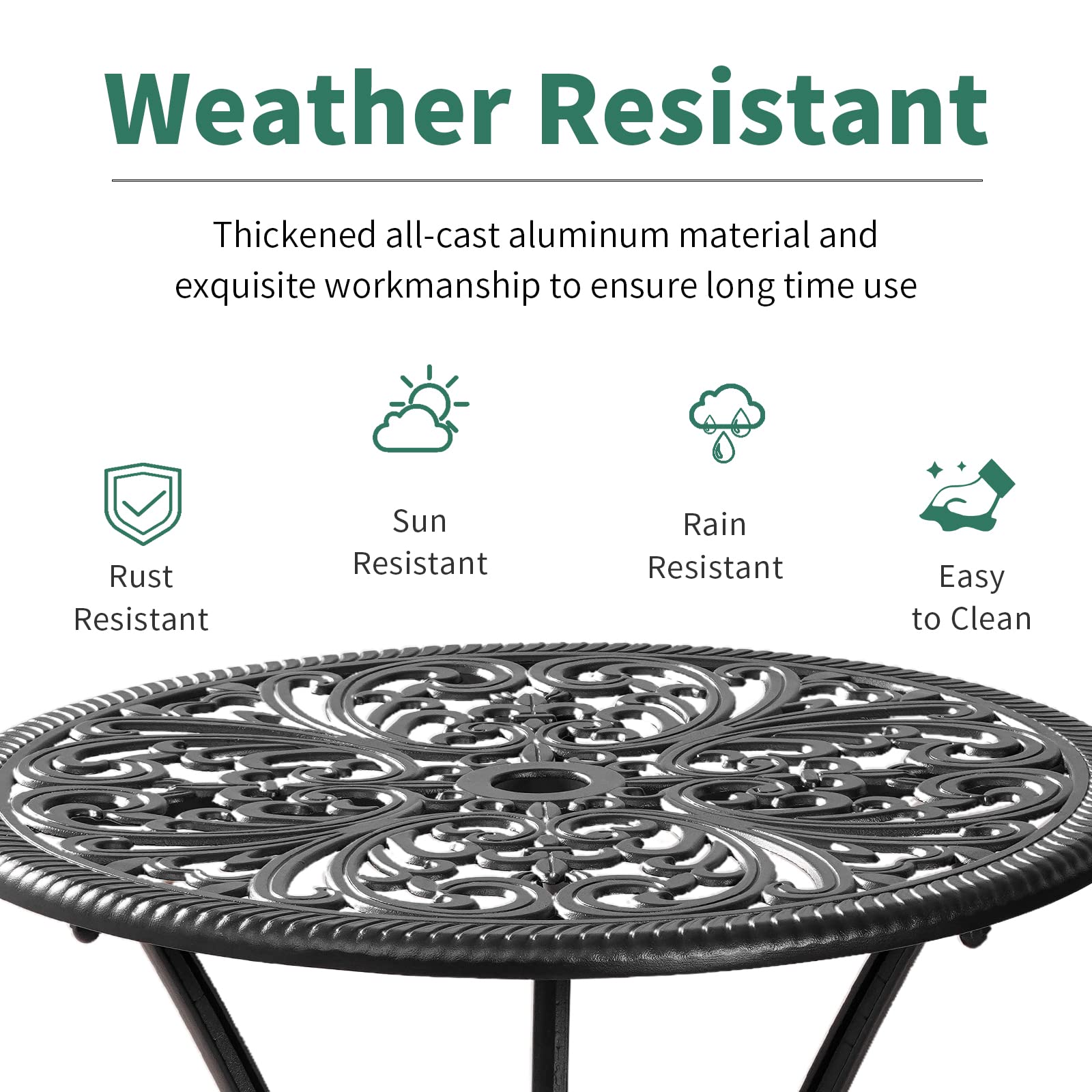 Withniture 3 Piece Patio Bistro Set Cast Aluminum Bistro Table and Chairs Set of 2 with Umbrella Hole,All Weather Metal Bistro Table Set,Outdoor Patio Furniture Set for Garden(Butterfly Black)