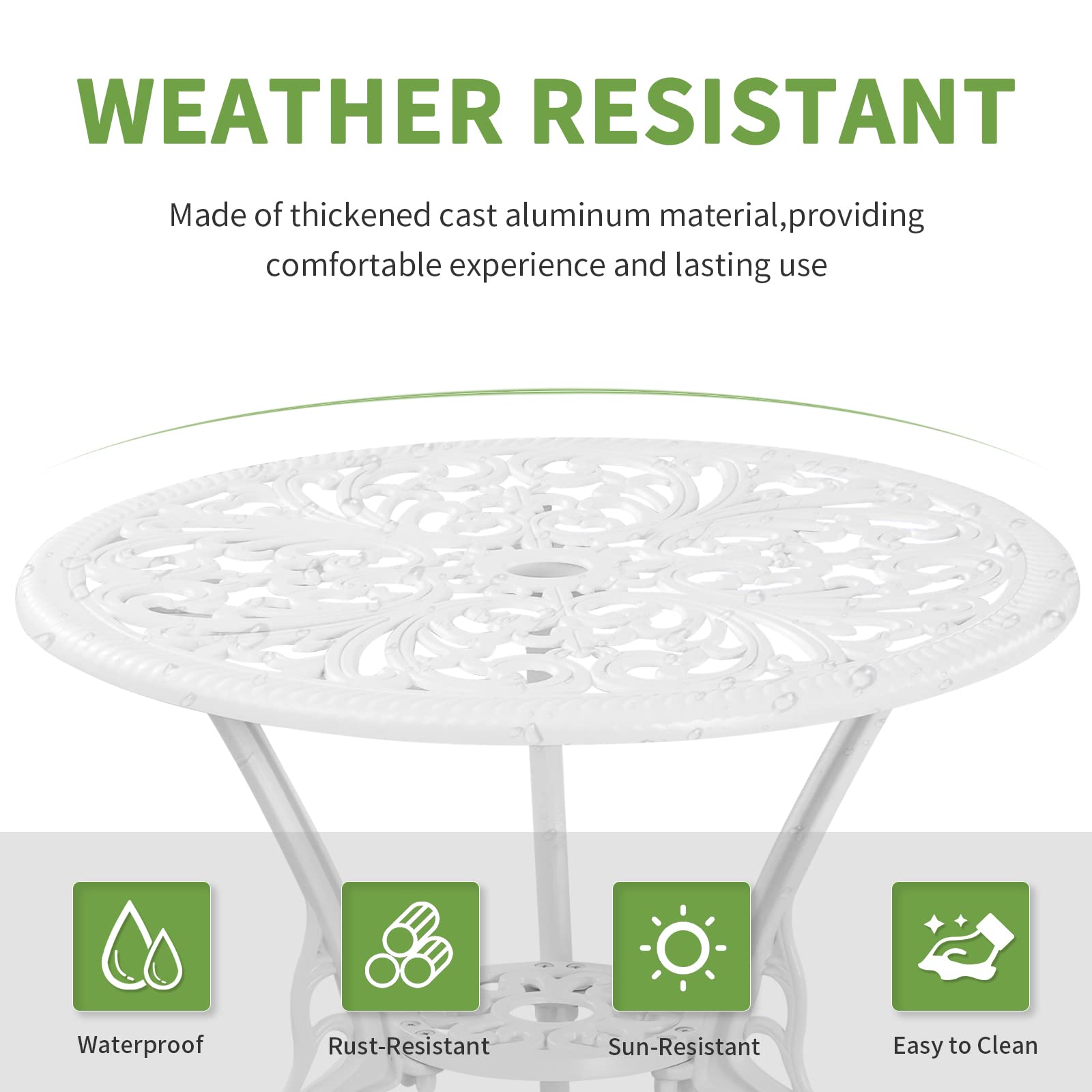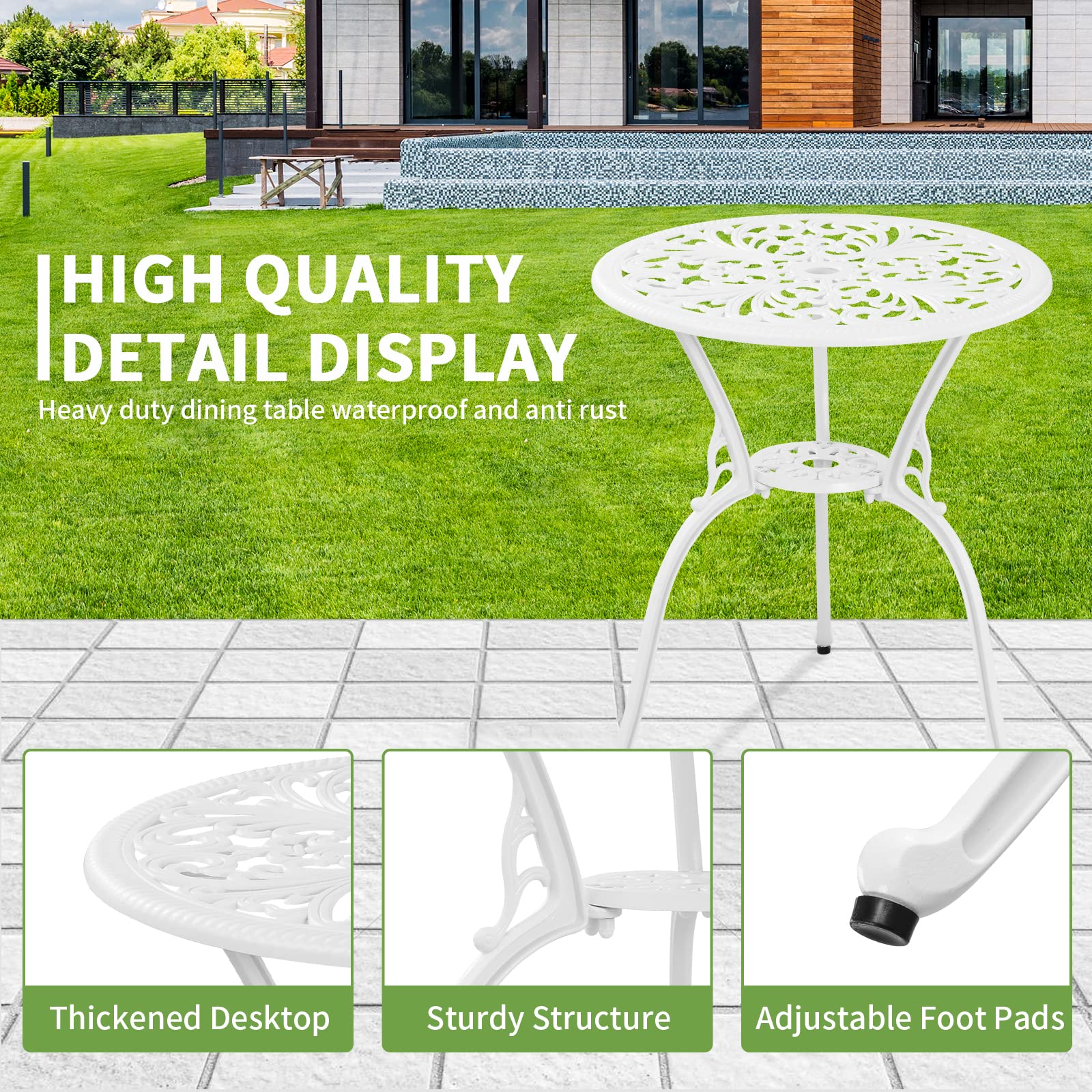 Withniture Bistro Set 3 Piece Outdoor Cast Aluminum Patio Bistro Set with Umbrella Hole, All Weather Bistro Table and Chairs Set, Small Patio Furniture Set for Garden, Porch,White