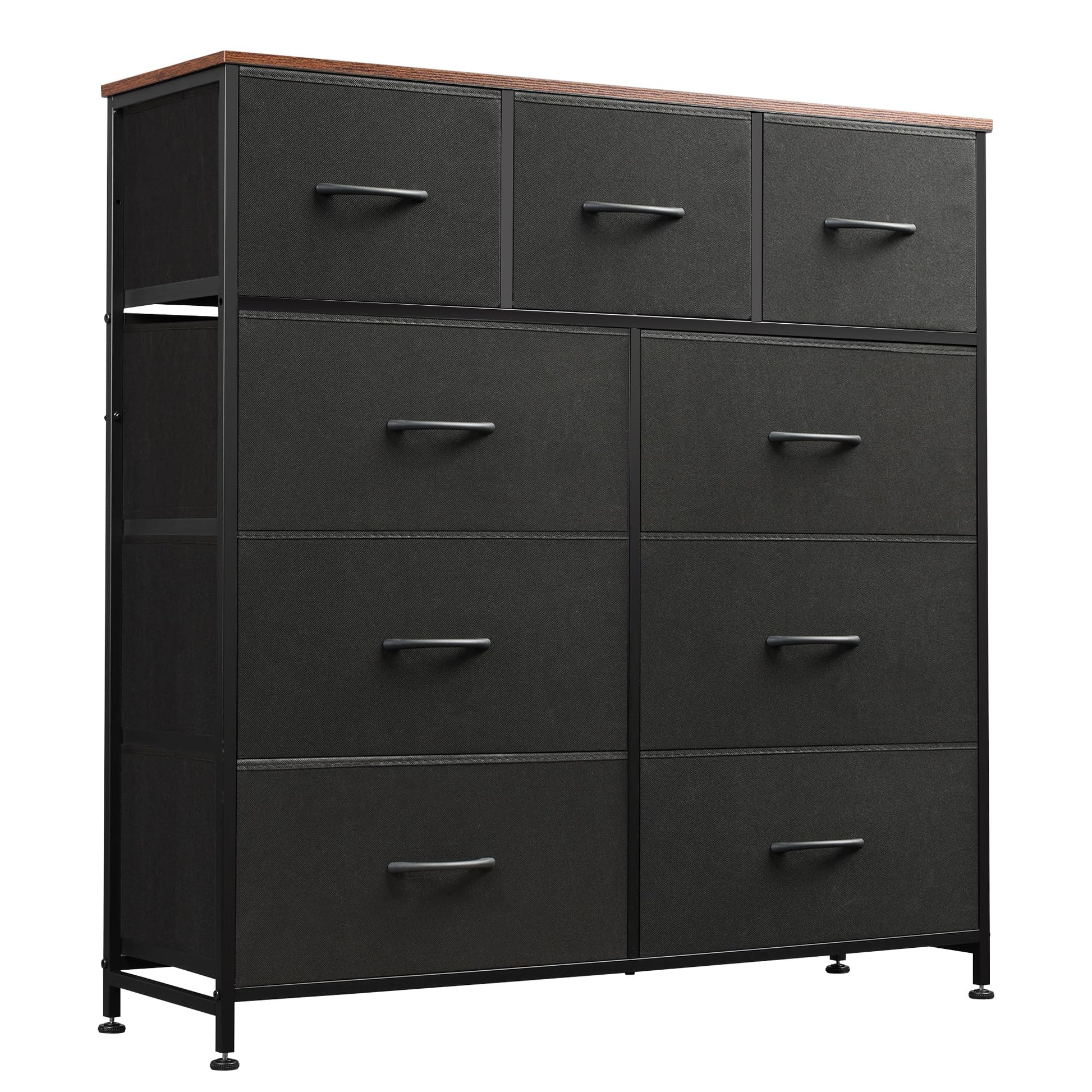 WLIVE 9 Drawer Dresser, Fabric Storage Tower for Bedroom, Hallway, Closet, Tall Chest Organizer Unit for Bedroom with Fabric Bins, Steel Frame, Wood Top, Easy Pull Handle, Black and Rustic Brown