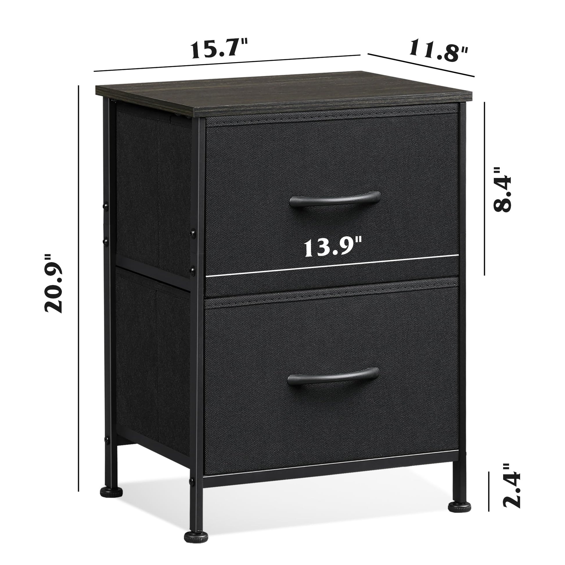 WLIVE Black Nightstand, Small Dresser for Bedroom with 2 Fabric Drawer, Bed Side Table with Drawers, End Table Bedside Furniture, Sturdy Steel Frame, Wood Top, Closet Organizer, College Dorm