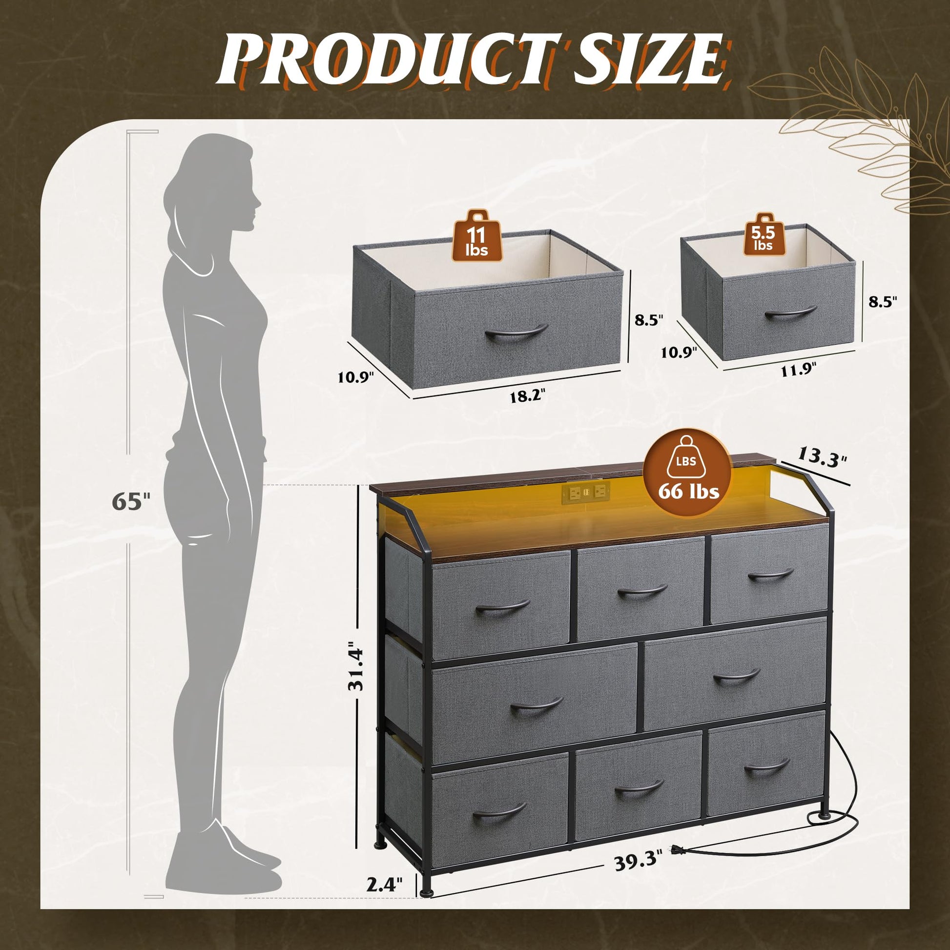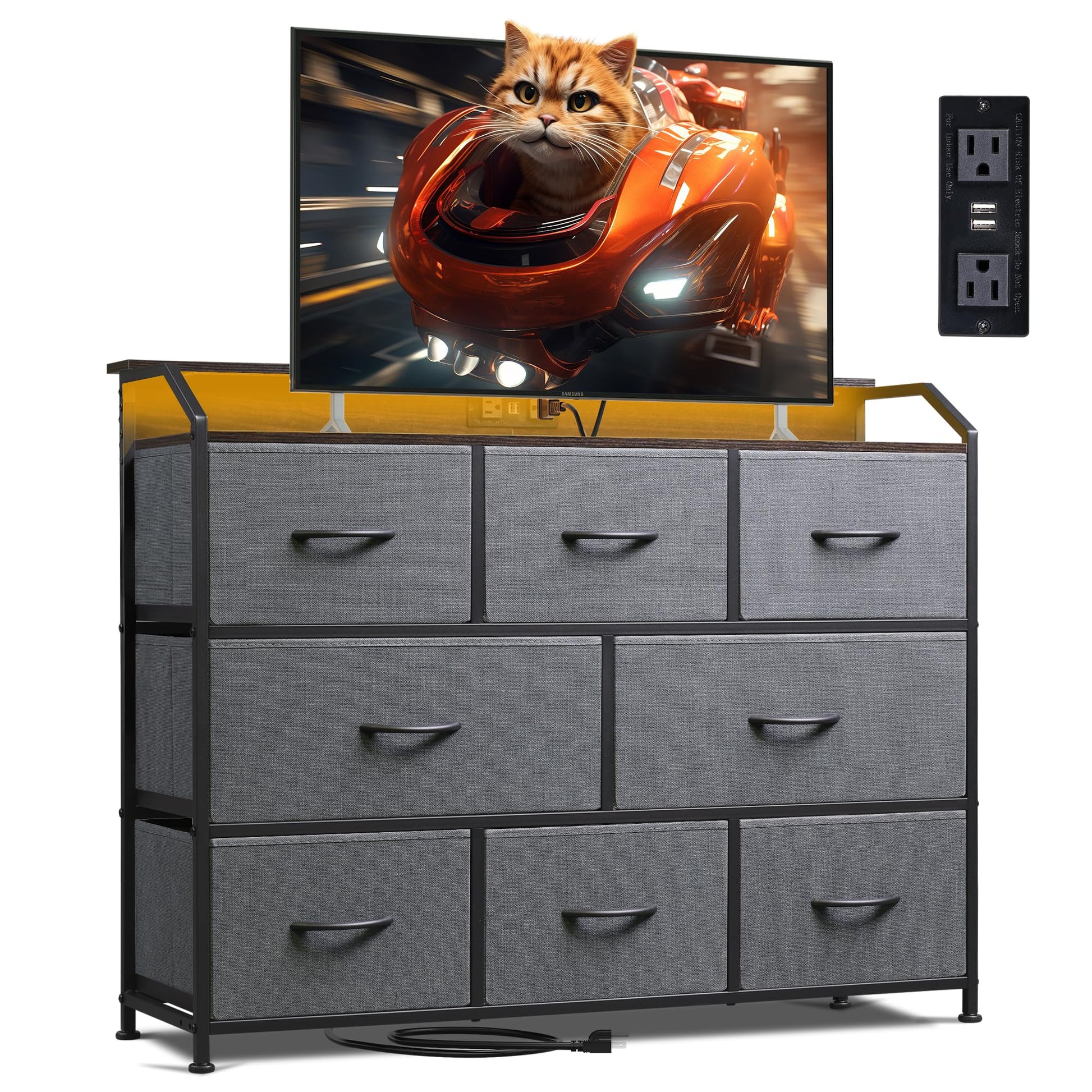 - 【🏠Large Storage】The led dresser for bedroom has 8 deep foldable fabric drawers, providing endless organizational possibilities. Wood top is great for placing frequently used items, keeping them in your reach.The TV stand for living room can hold up to 66 lbs suitable for 45' TV