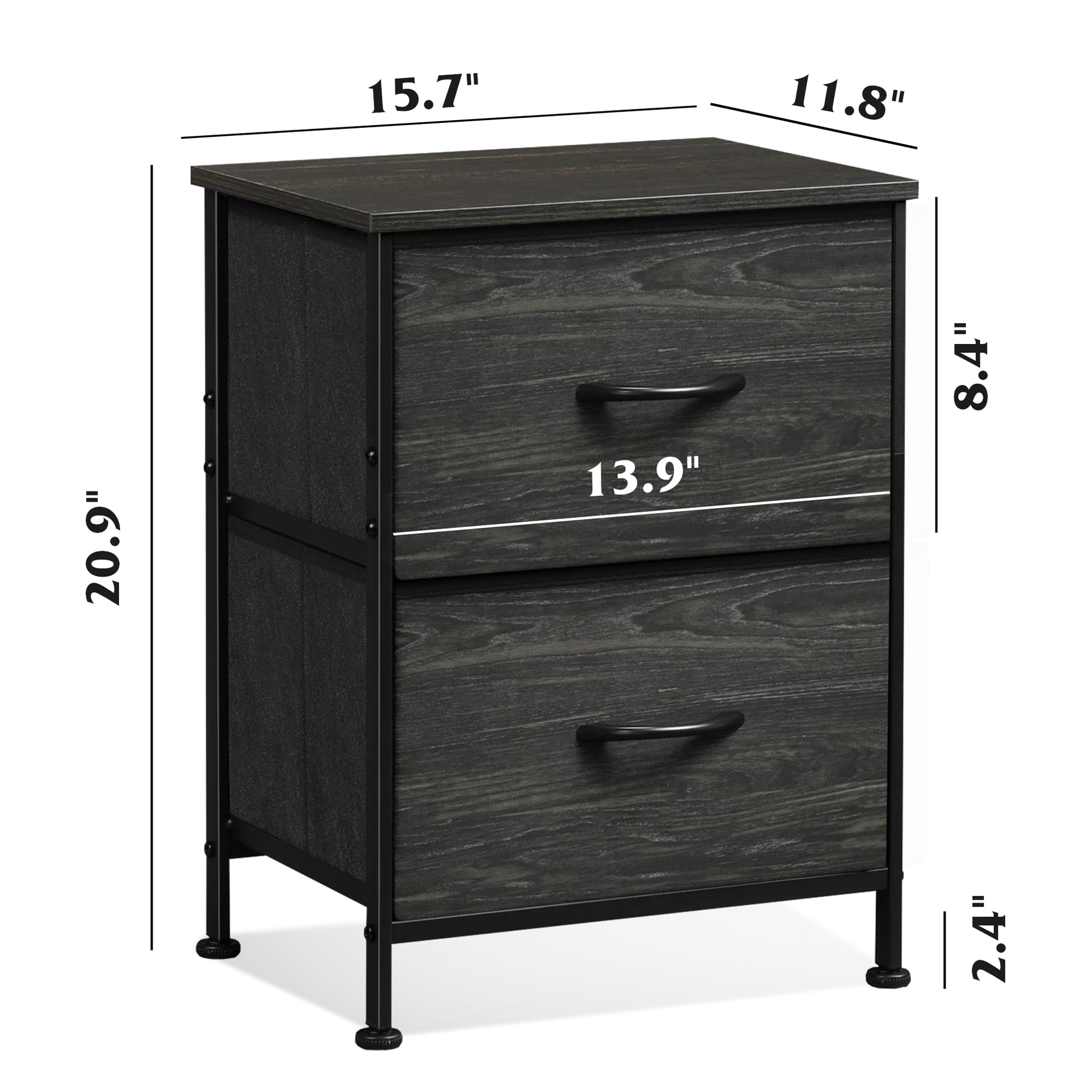 - EASY ASSEMBLY: The bedside table can be assembled in 15 minutes with the instructions and tools included in the package. The overall dimensions of the 2 drawer dresser: 15.7' L x 11.8' W x 20.9' H.