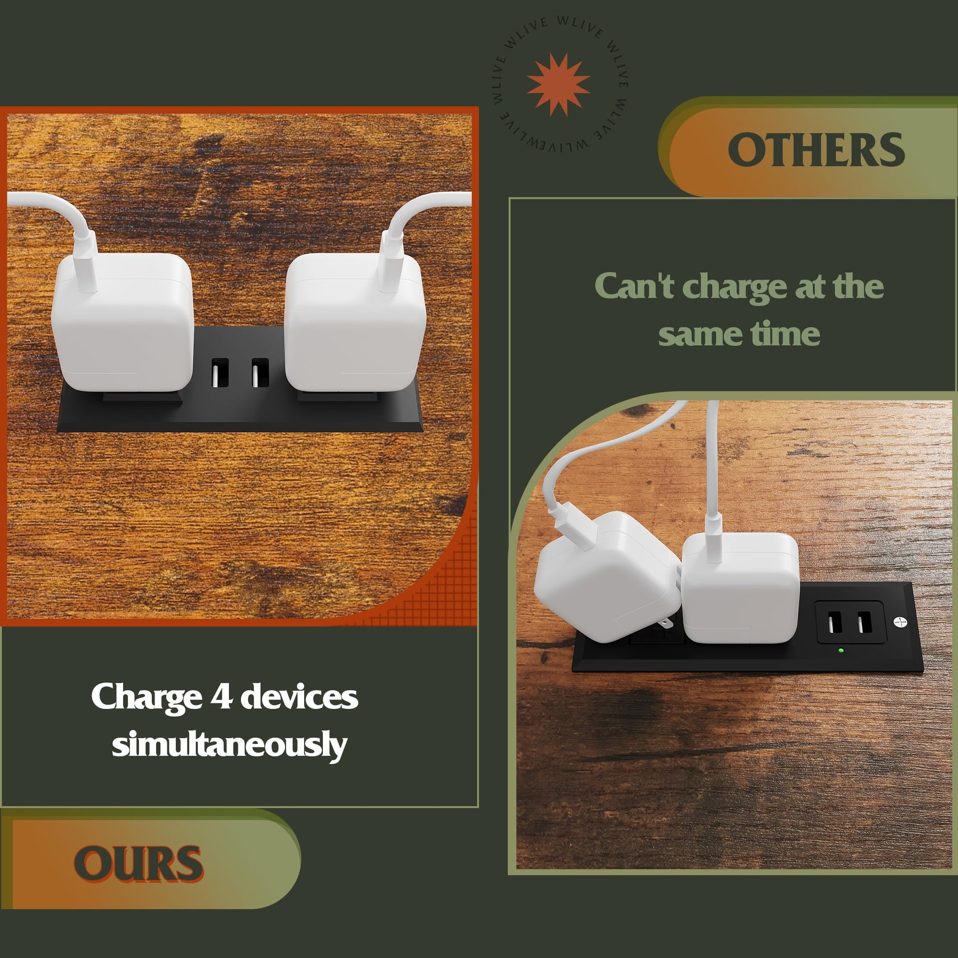 - [Nightstand with Charging Station]: No electricity? Don't worry. This end table comes with 2 standard plug outlets and 2 USB ports for most electronics. The layout of outlests is just right to avoid chargers‘ mutual interference and meet your needs for charging 4 devices at the same time.
