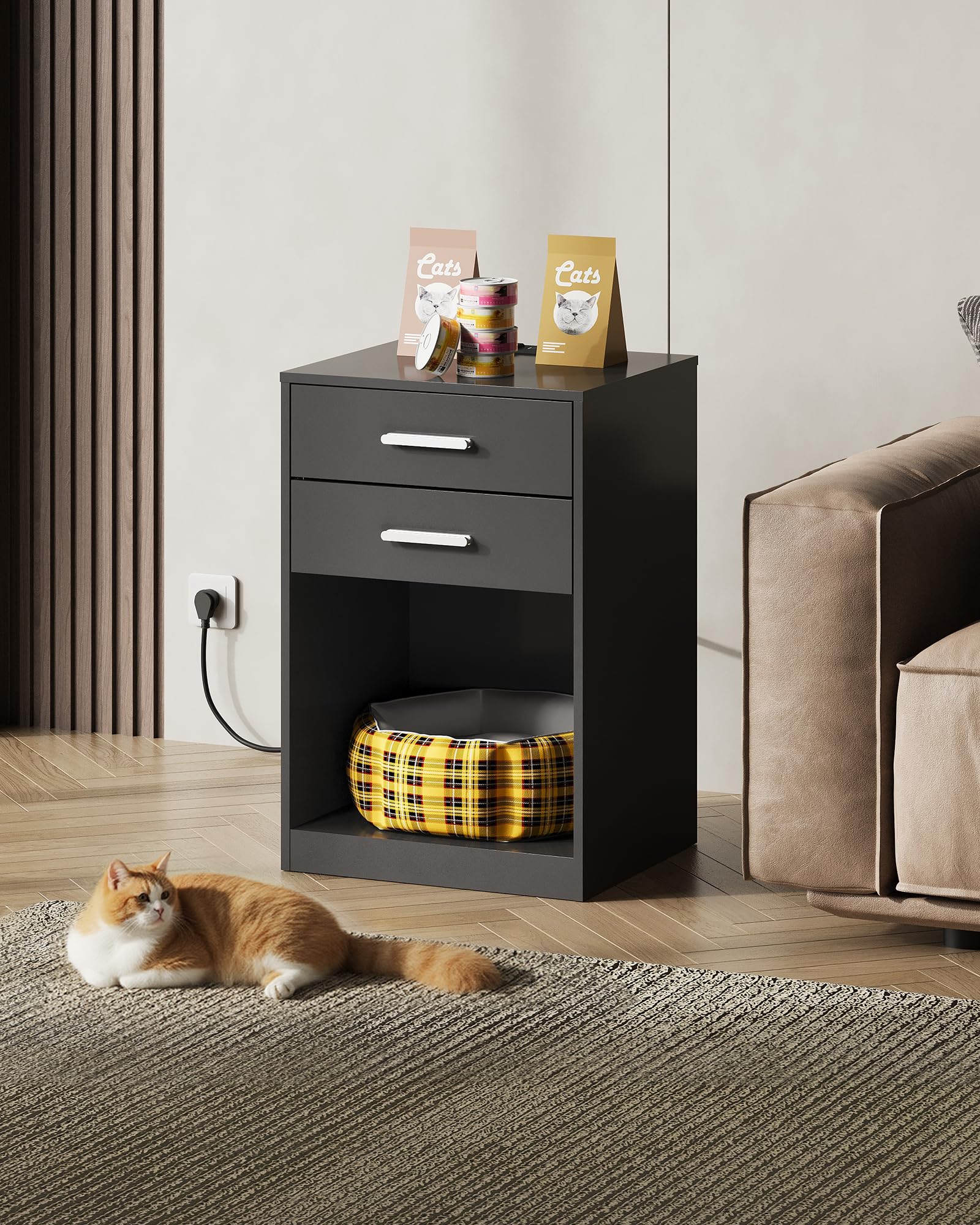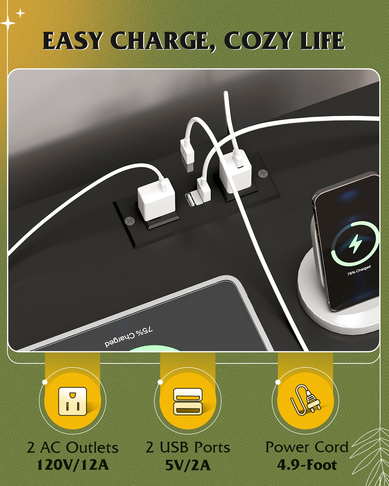 - [Convenient Charging Station] This nightstand table set features 2 USB ports + 2 AC outlets per table for simultaneous device charging. The smart power layout prevents cord clutter—perfect for phones, laptops, and bedtime essentials.