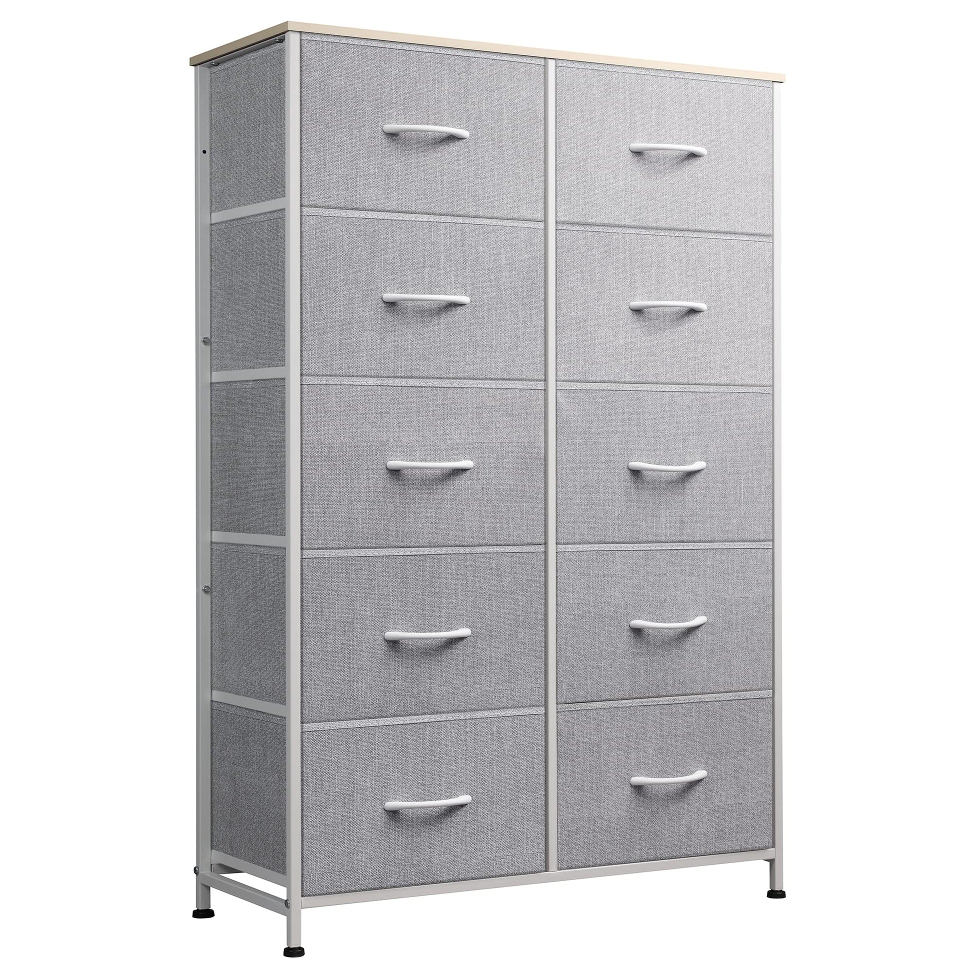 WLIVE Tall Dresser for Bedroom with 10 Drawers, Chest of Drawers, Dressers Bedroom Furniture, Storage Organizer Unit with Fabric Bins for Closet, Hallway, Living Room, Entryway, Light Grey
