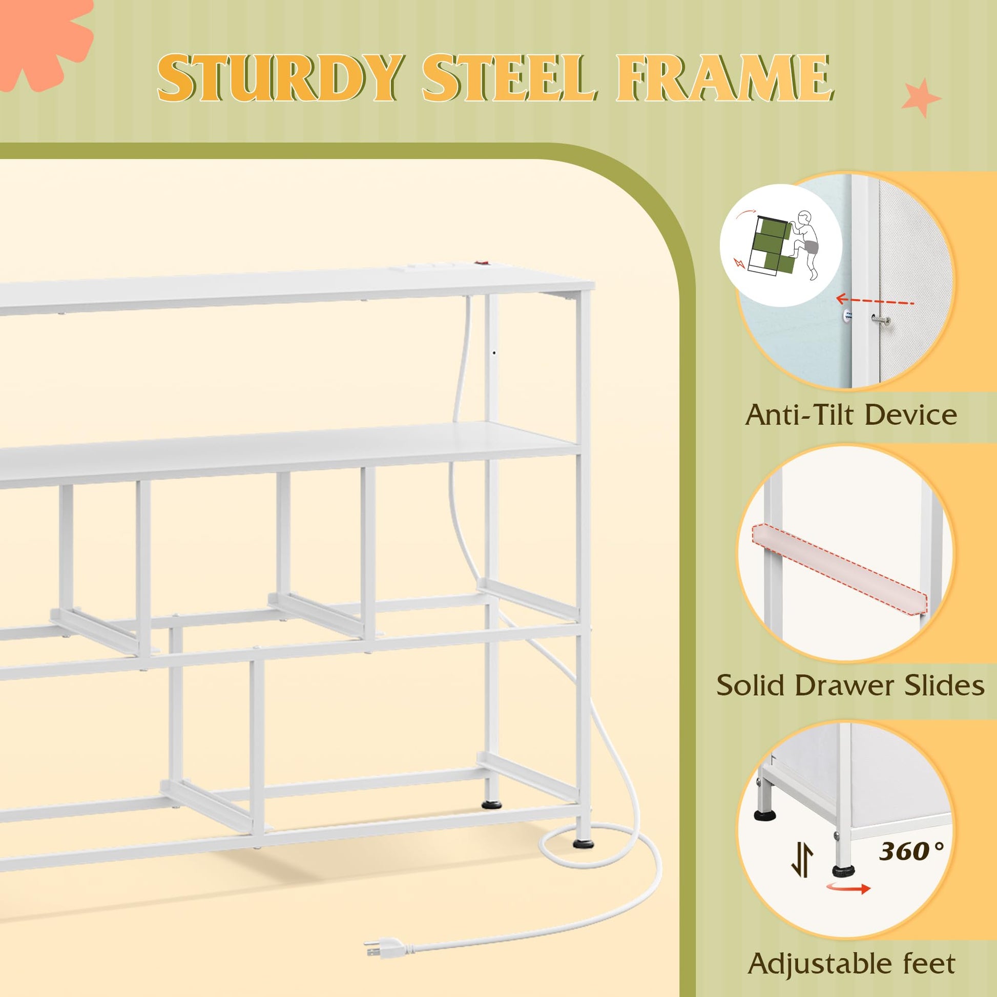 - 【✨ Powered Storage Dresser】Say goodbye to messy wires! The 5 Drawers Dresser is equipped with 3 AC sockets, 1.5m flexible cable length, TV, game console, router a power board can be done, instant increase desktop cleanliness by 50%, through UL/ETL certification, electricity safety!