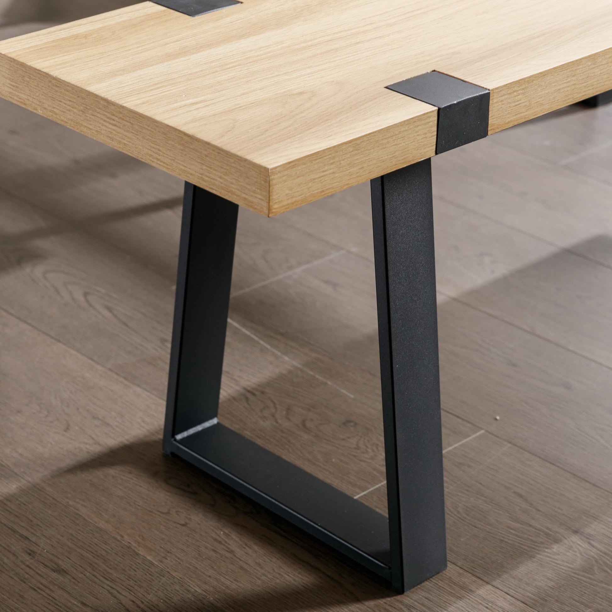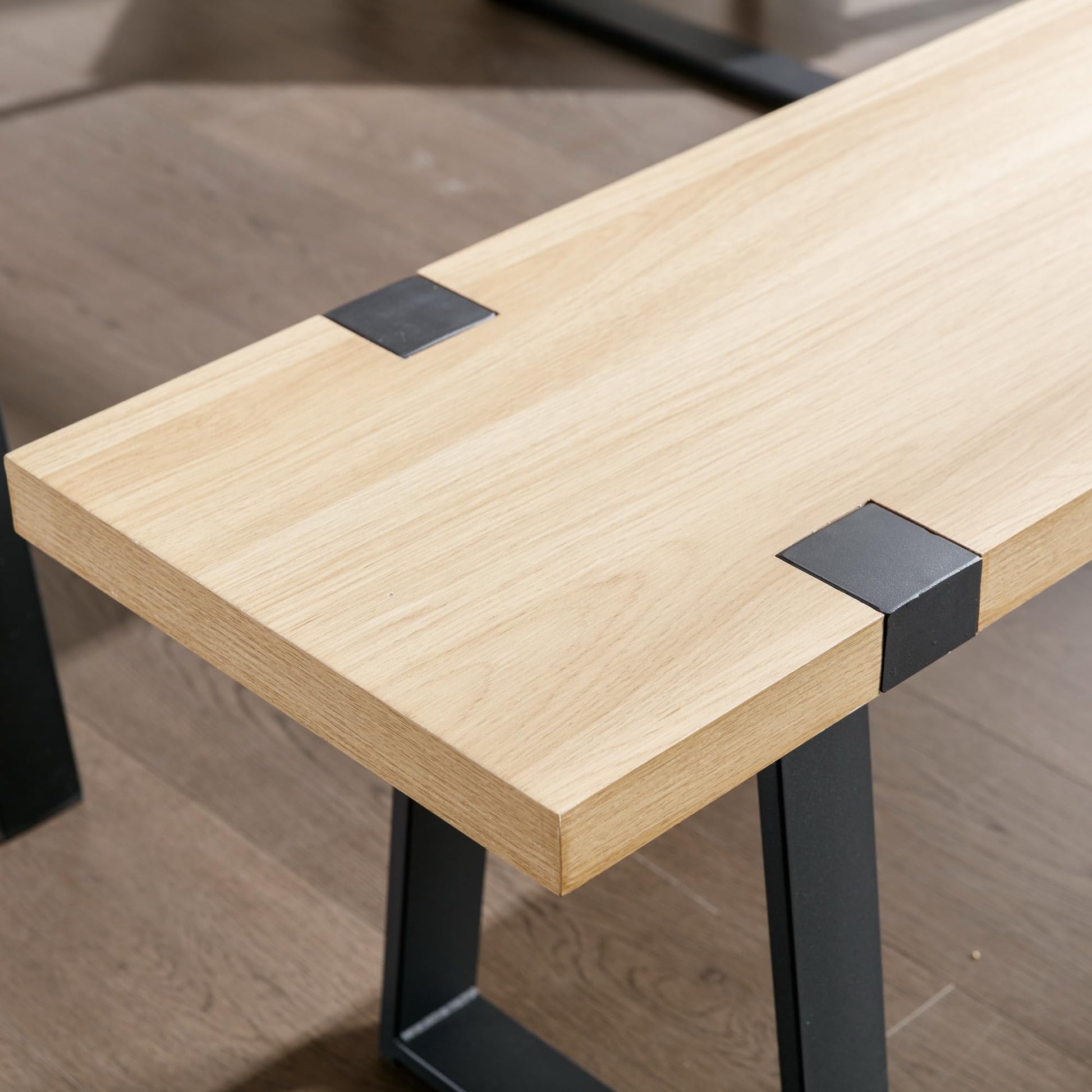 Wooden Dining Bench 60” Industrial Table Benches, Seating Chair Rustic Indoor Benches, Mid Century Kitchen Bench with Metal Legs, Light Oak