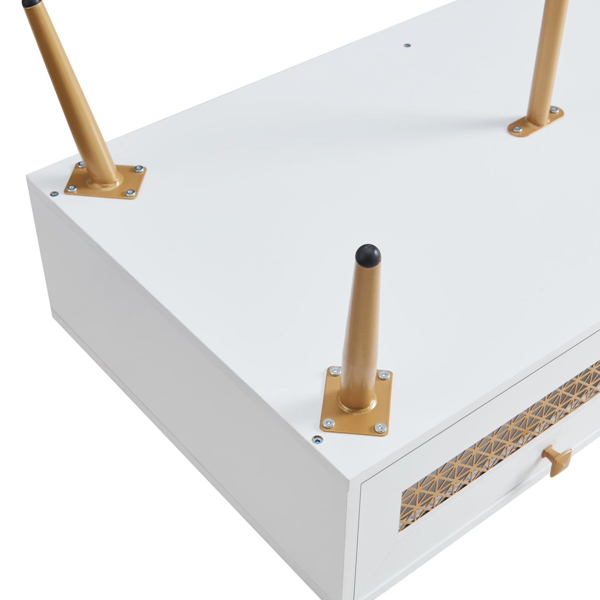 Wooden Mid Century Modern Coffee Table, Retangle Coffee Table with Sliding Door for Living Room, White