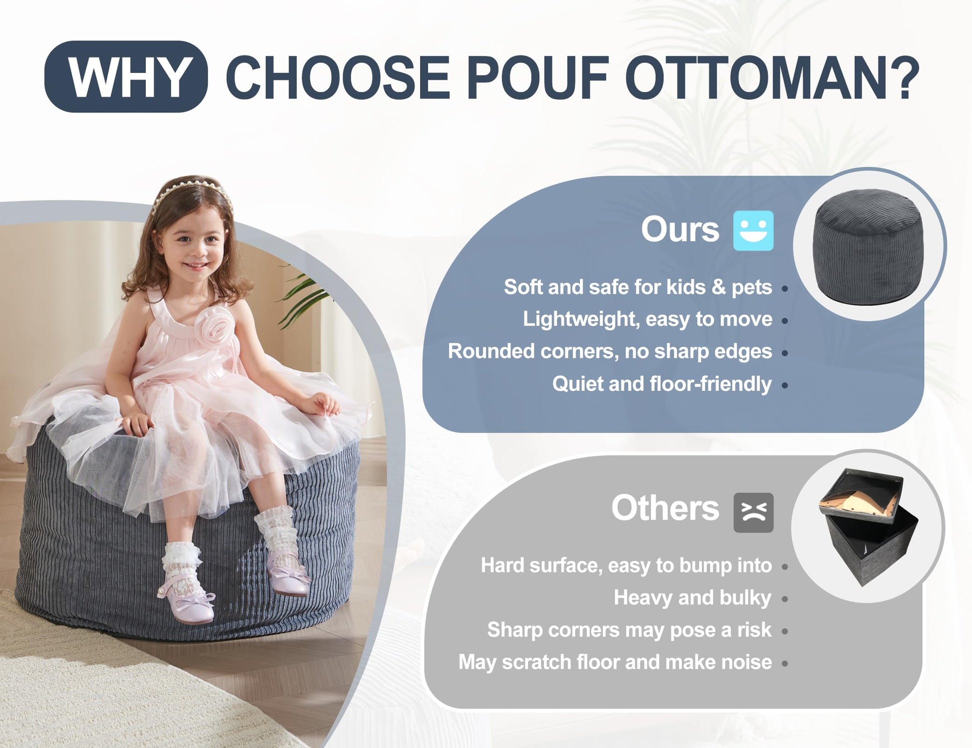 WSOFRLAC Pouf Ottoman Foot Stools Ottoman with Foam Small Corduroy Ottomans for Living Room Ottomans Pouf 20x15 Floor Poufs Foot Rest for Office Chair Dark Grey Foot Stool Small