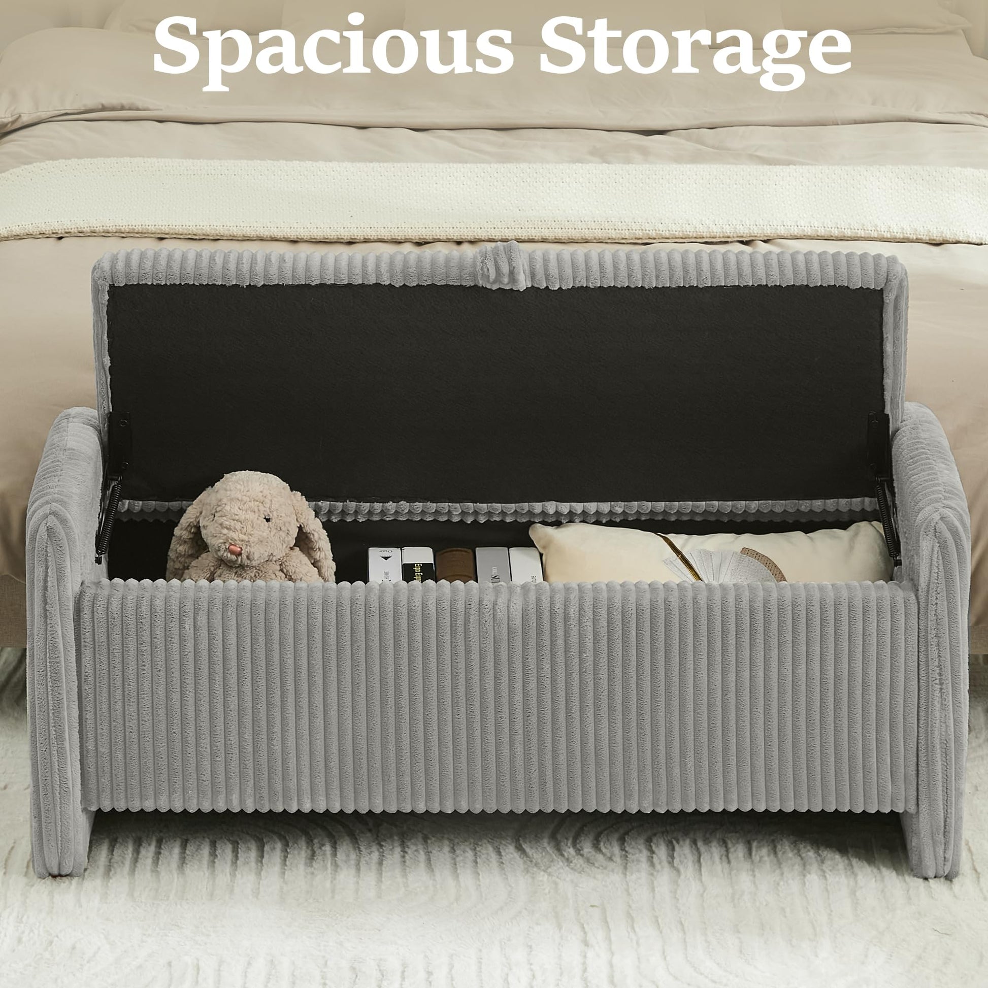 WUTUTUEE 44'' Corduroy Storage Ottoman Bench, Upholstered End of Bed Storage Bench with Safety Hinge, Linear Bed Bench for Bedroom, Living Room, Entryway, Grey
