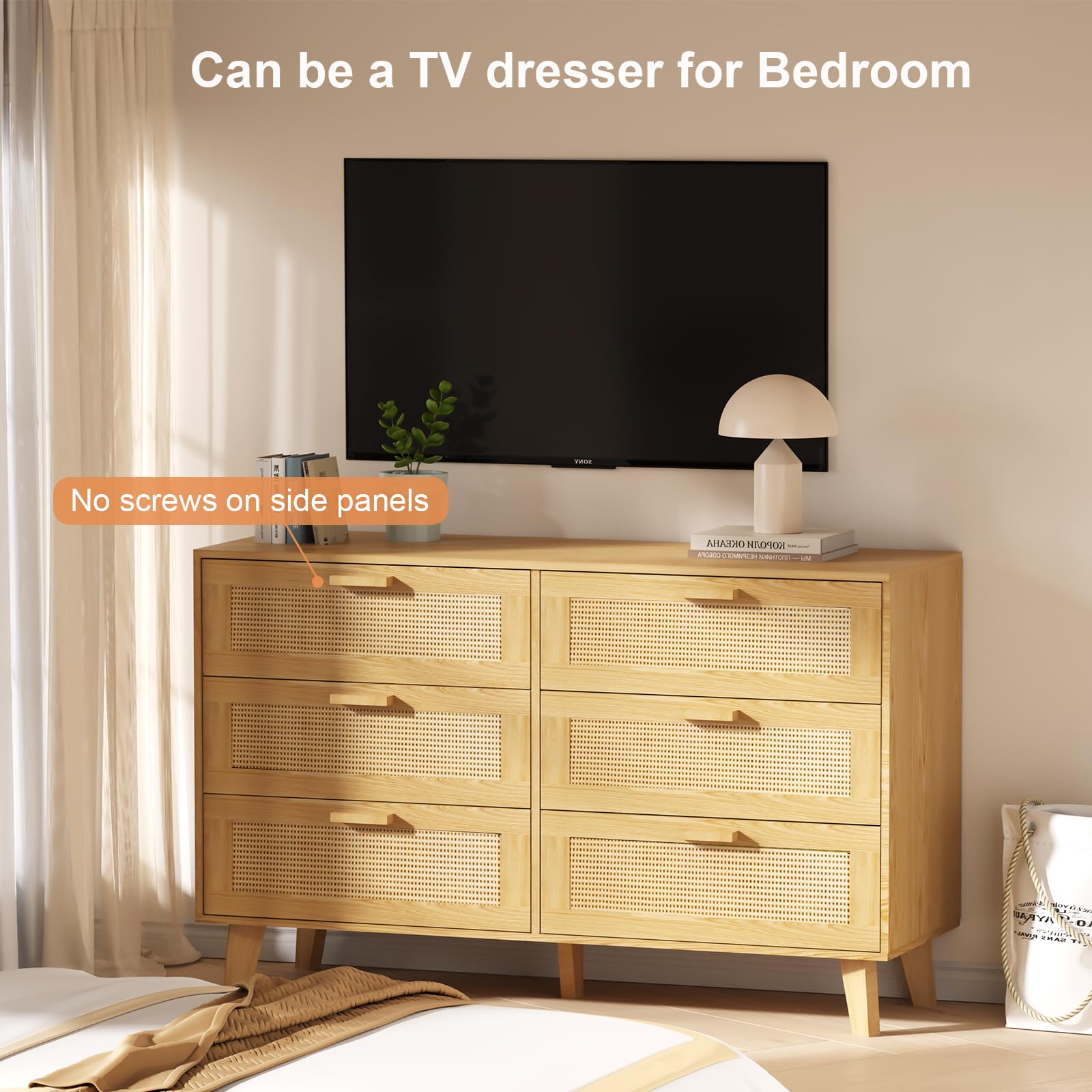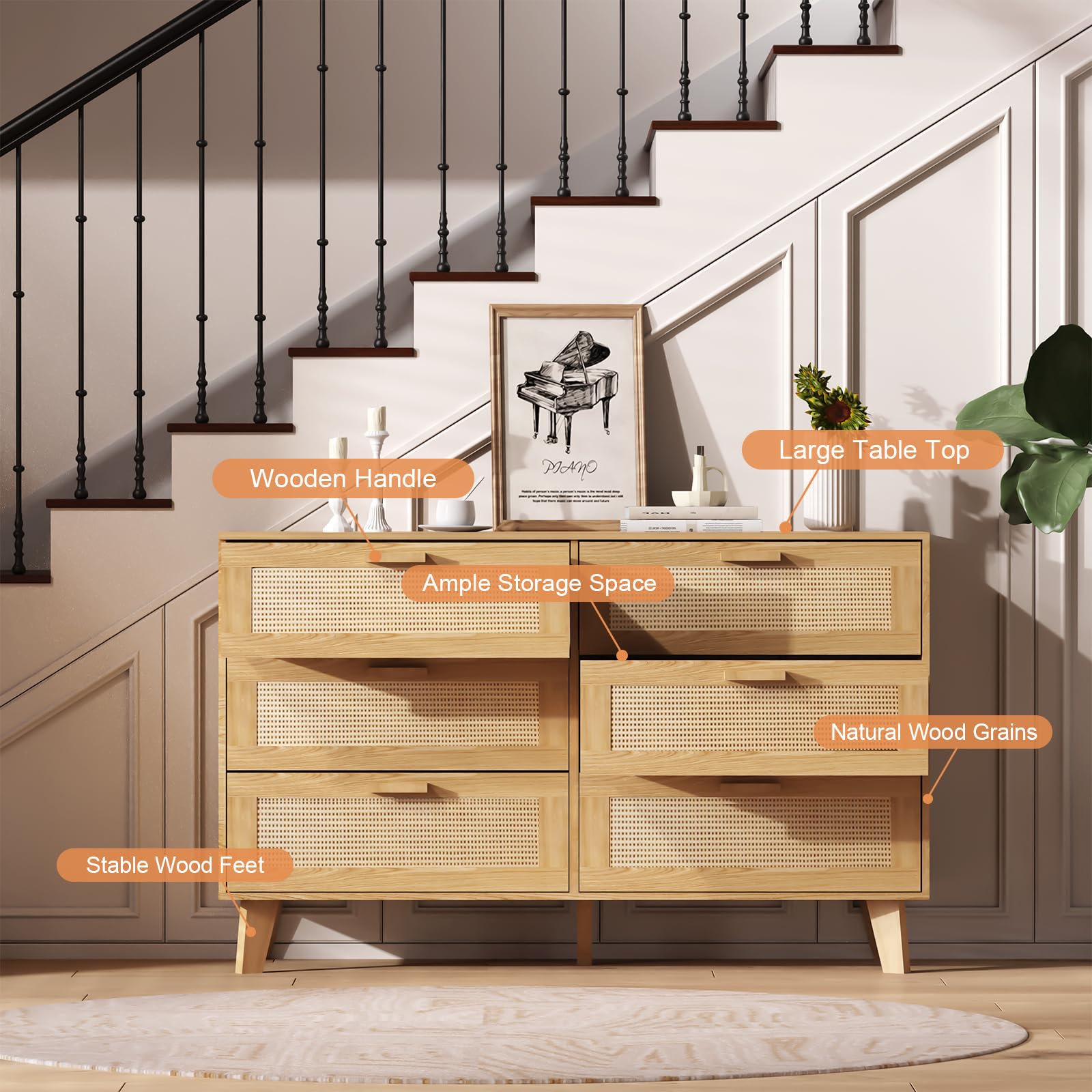 - SUFFICIENT STORAGE: The double rattan dresser has 6 large drawers to hold clothes, blankets, toys, socks, or trouser. This dresser makes your space neat and tidy instantly. Overall dimension: 15.7'D x 42.5'W x 29.3'H.
