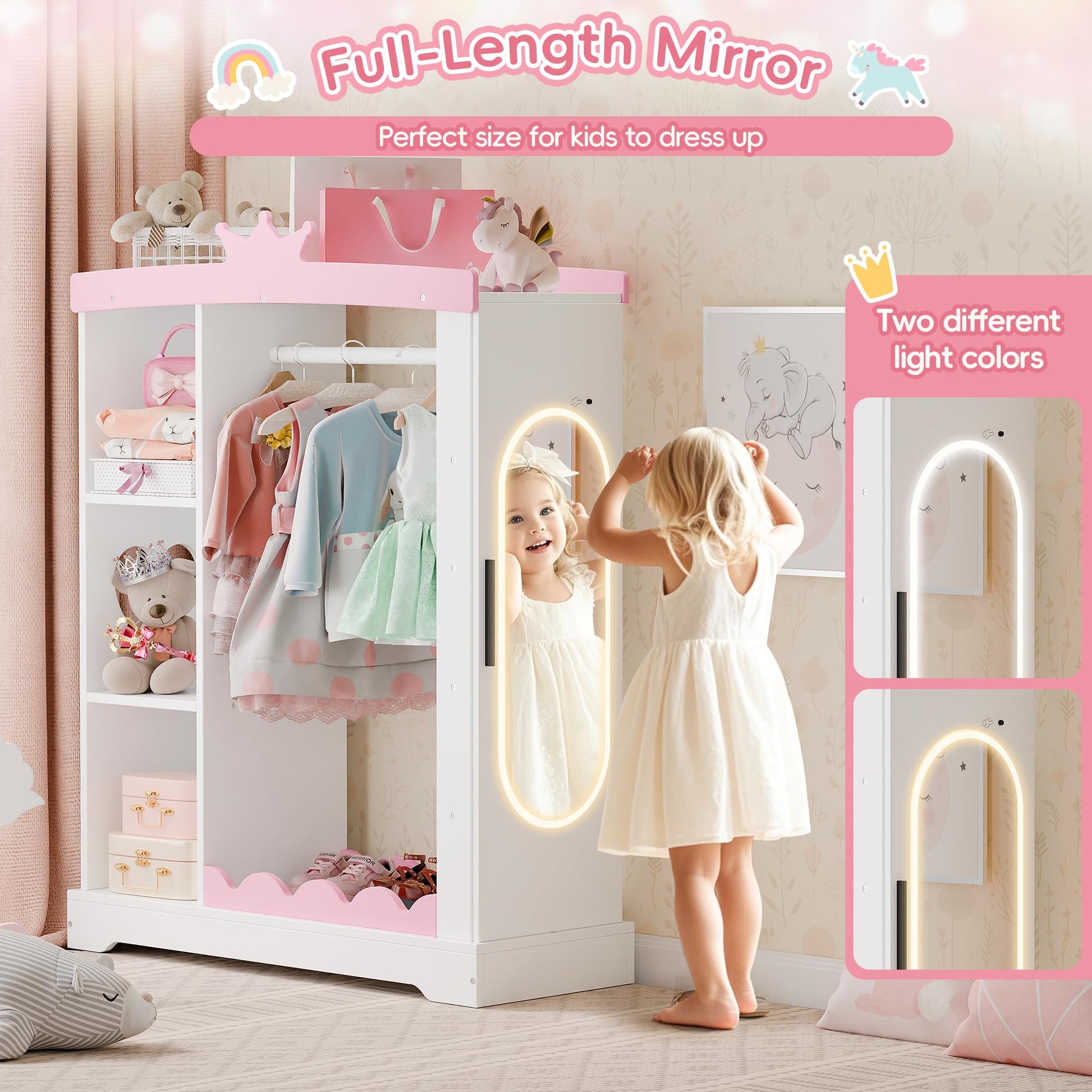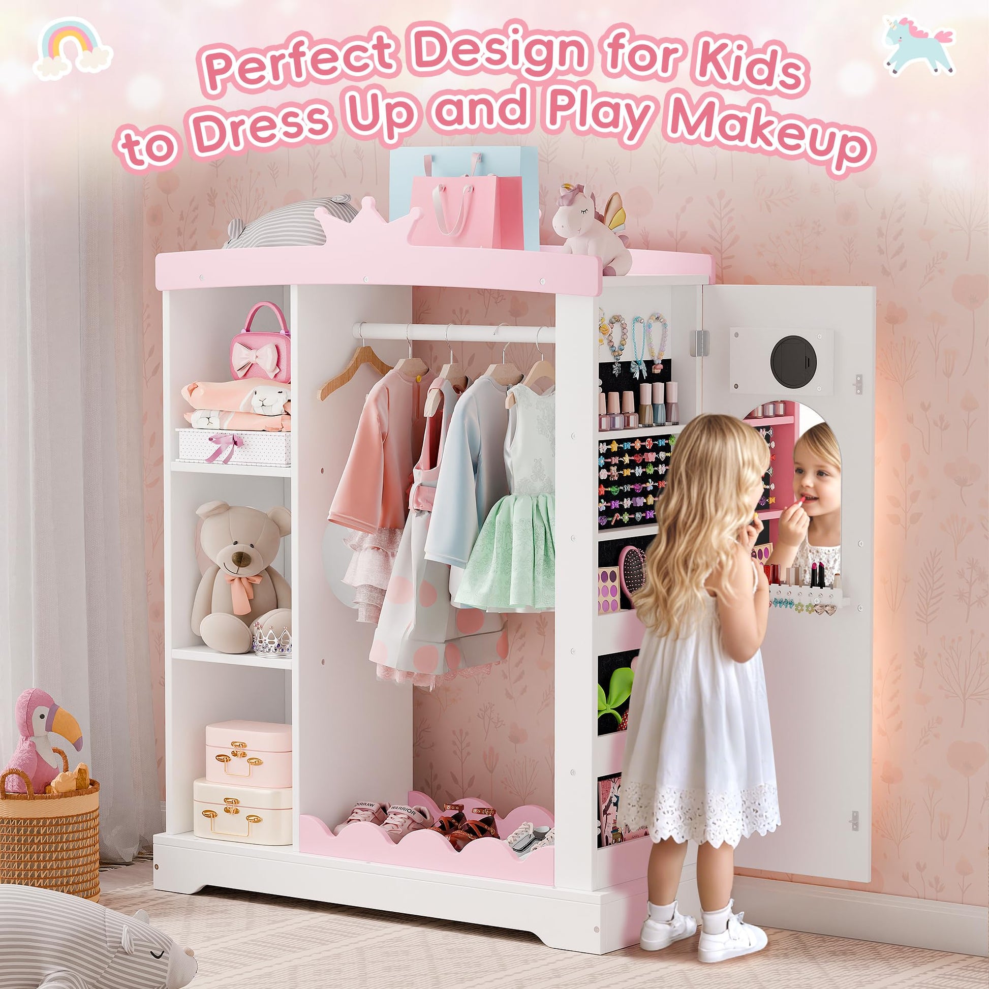 Xilingol Kids Armoire with Jewelry Cabinet, Dress up Storage with Mirror and Shelves, Princess Dress Closet and Costumes Wardrobe Closet, Costume Organizer for Bedroom, Kids Room, Girls (White)