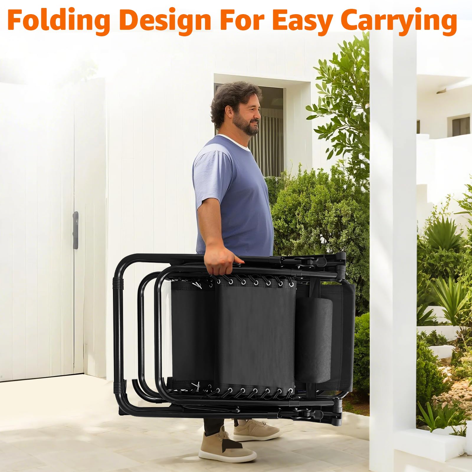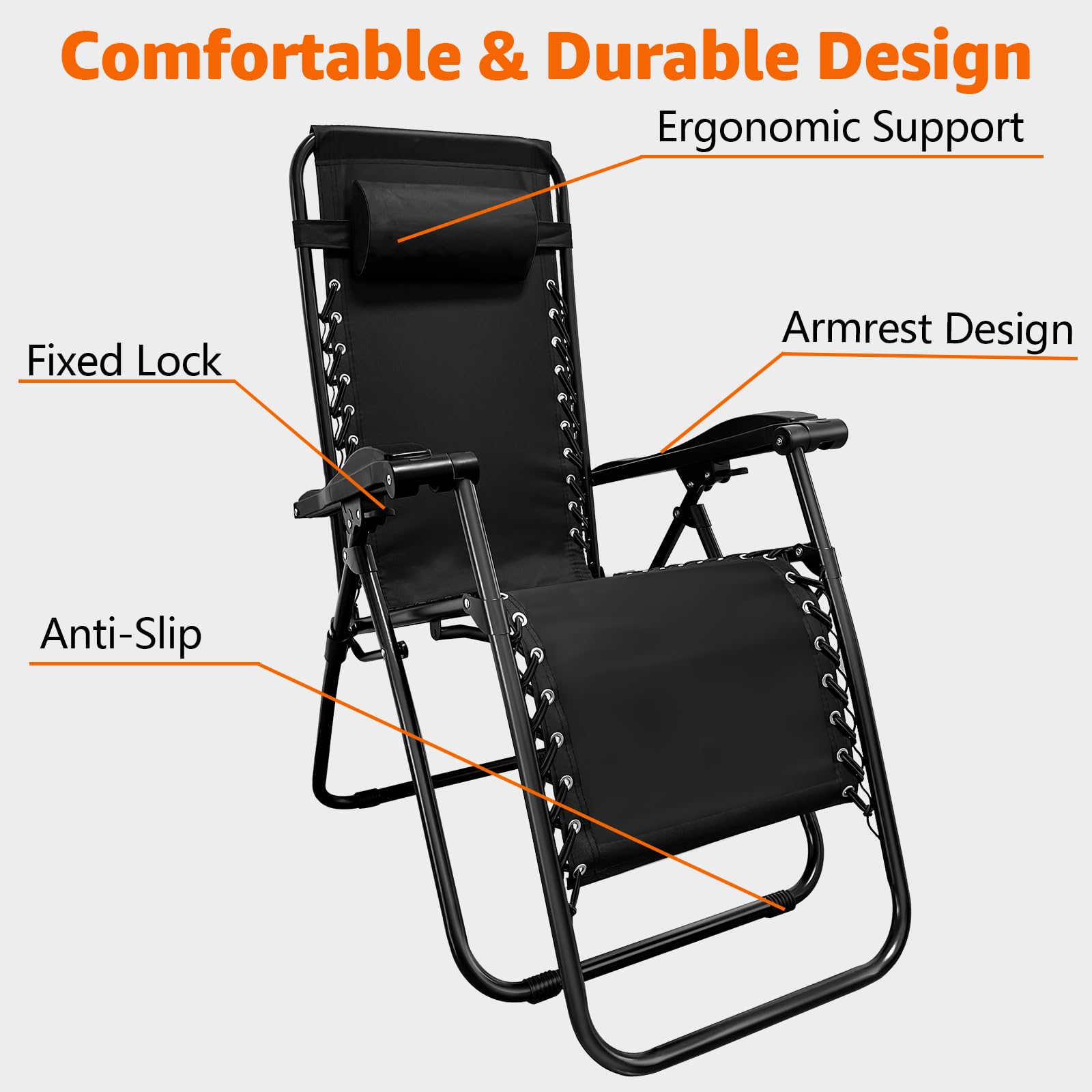 XYJBHB Zero Gravity Recliners Outdoor Adjustable Folding Reclining Lounge Chairs w/Pillows, Adjustable, Steel Frame, Black - Ideal for Patio Backyard Beach Black (2 Pack)