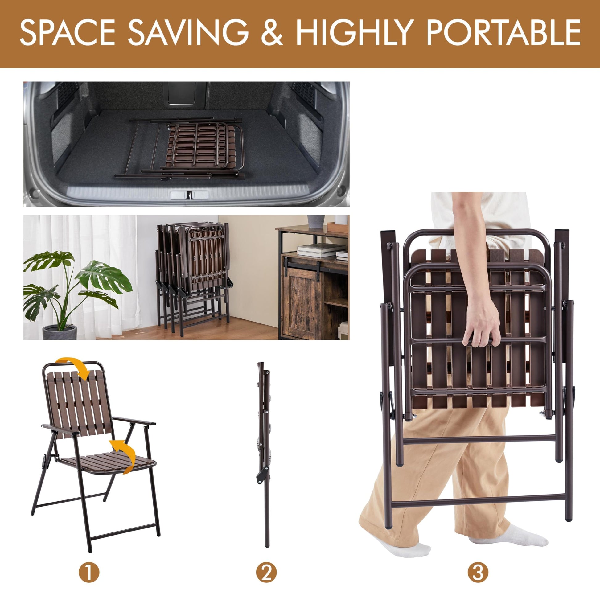 - All-weather Material: Crafted with a PP seat and framed by powder-coated iron support, this outdoor folding chair set offers outstanding resistance to weather, water, wear, and scratches. It’s built to withstand challenging outdoor elements and remains in great condition for years to come