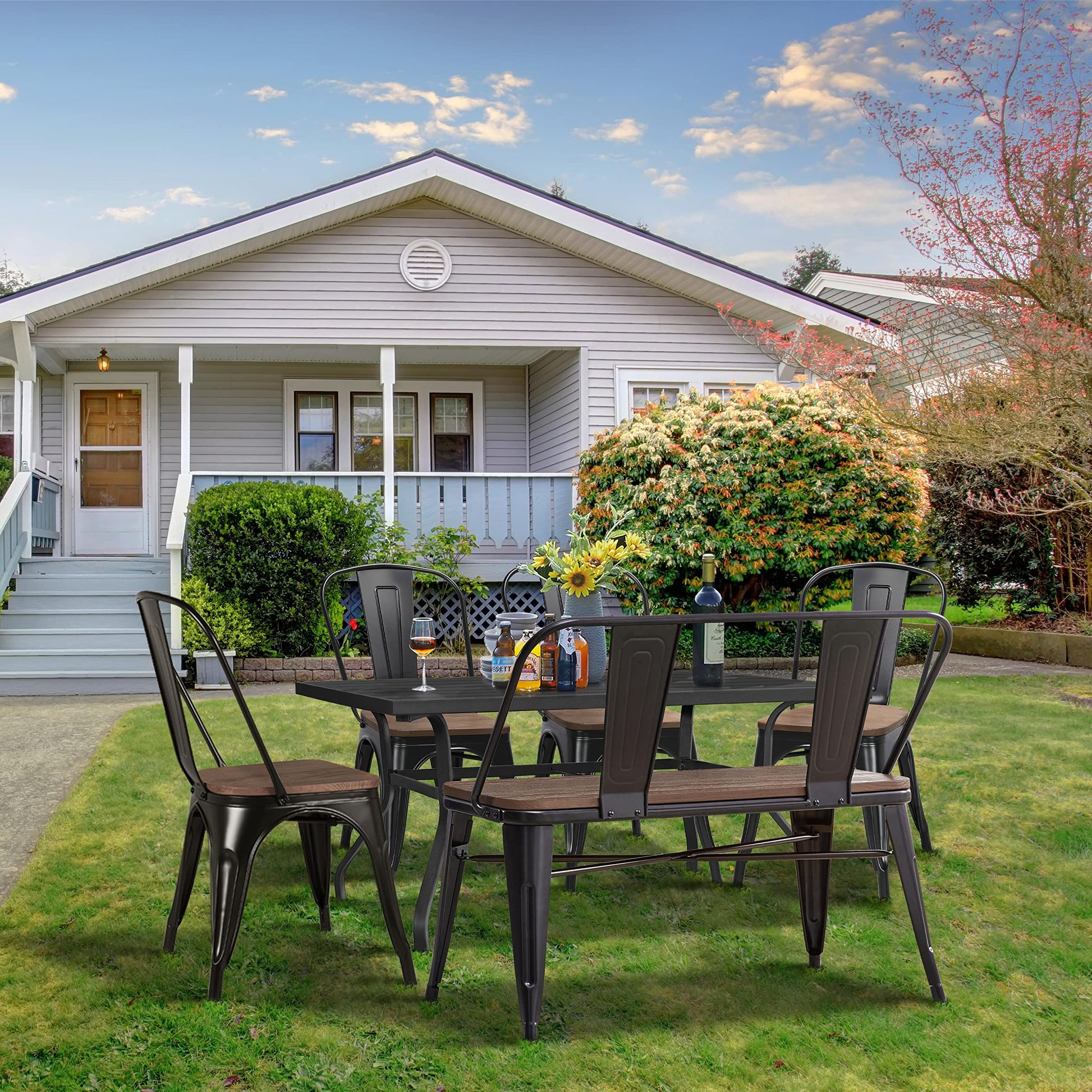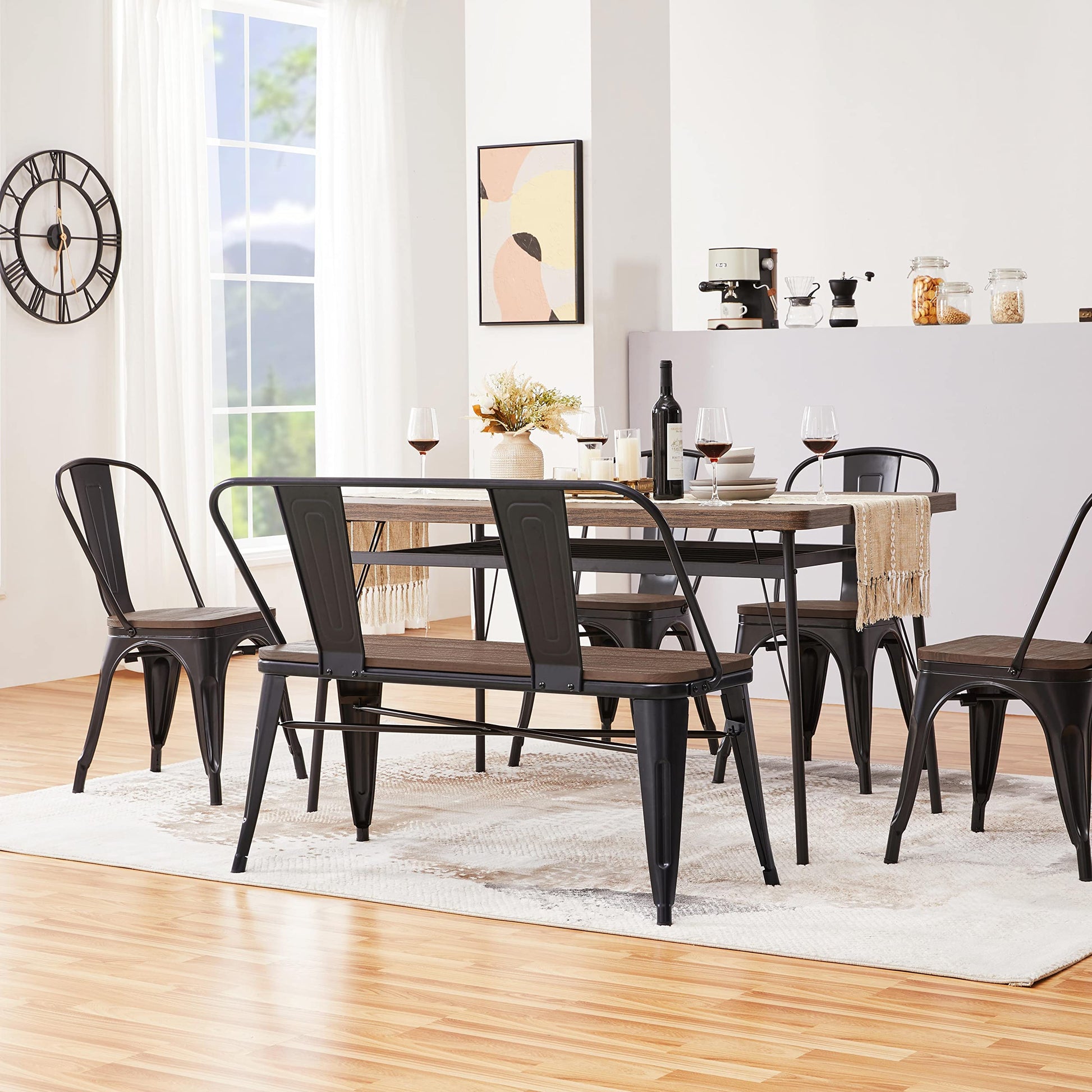 Yaheetech Industrial Metal Dining Bench Mid-Century Farmhouse Bench with Wooden Top Seat and Removable Backrest for Kitchen/Garden, Black