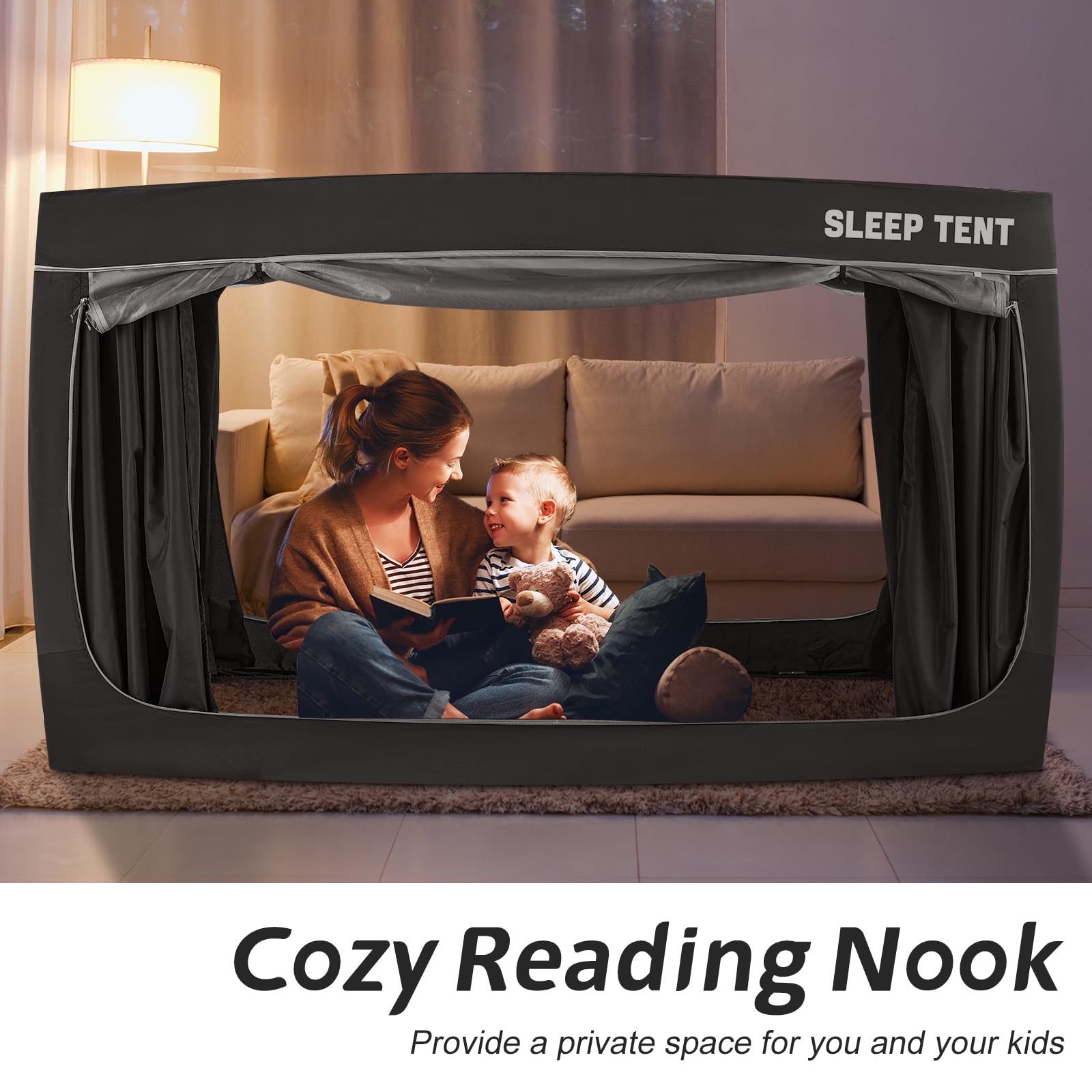- Light-Reducing, Durable Construction: Crafted from high-quality, washable, skin-friendly fabric and sturdy fiberglass poles, our sleep tent is built to last. Its solid, dark-colored design minimizes unwanted light and disturbances, promoting uninterrupted sleep, making it great for individuals with autism or anyone needing a quiet space.