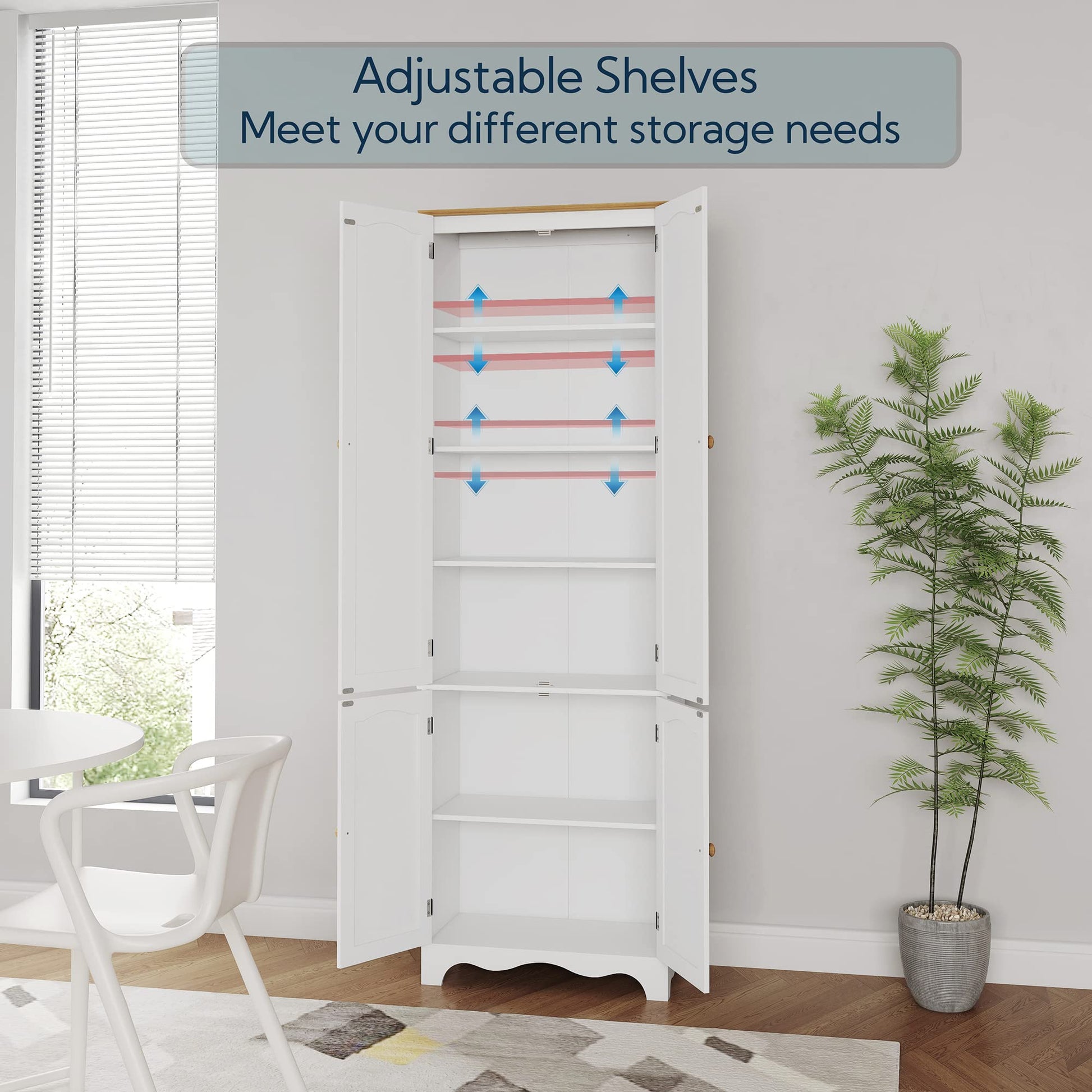 Yusong 72'' Tall Kitchen Pantry Cabinet, Freestanding Storage Cabinet with Doors and Shelves, Wooden Food Pantry Farmhouse Cupboard Buffet for Kitchen Dining Living Room, White