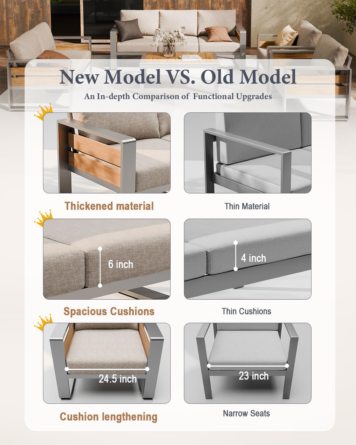 - ⛱️【Rust-resistant All-Aluminum Frame】Crafted with a powder-coated aluminum frame, stainless steel screws, this outdoor furniture set is resistant to rain, snow, and sun exposure, it's water-resistant, and rust-resistant so you can feel safe leaving this set outdoors no matter the season. Its lightweight design allows for effortless movement and repositioning. Perfectly fitting with your poolside area, backyard, poolside, balcony, garden and deck.