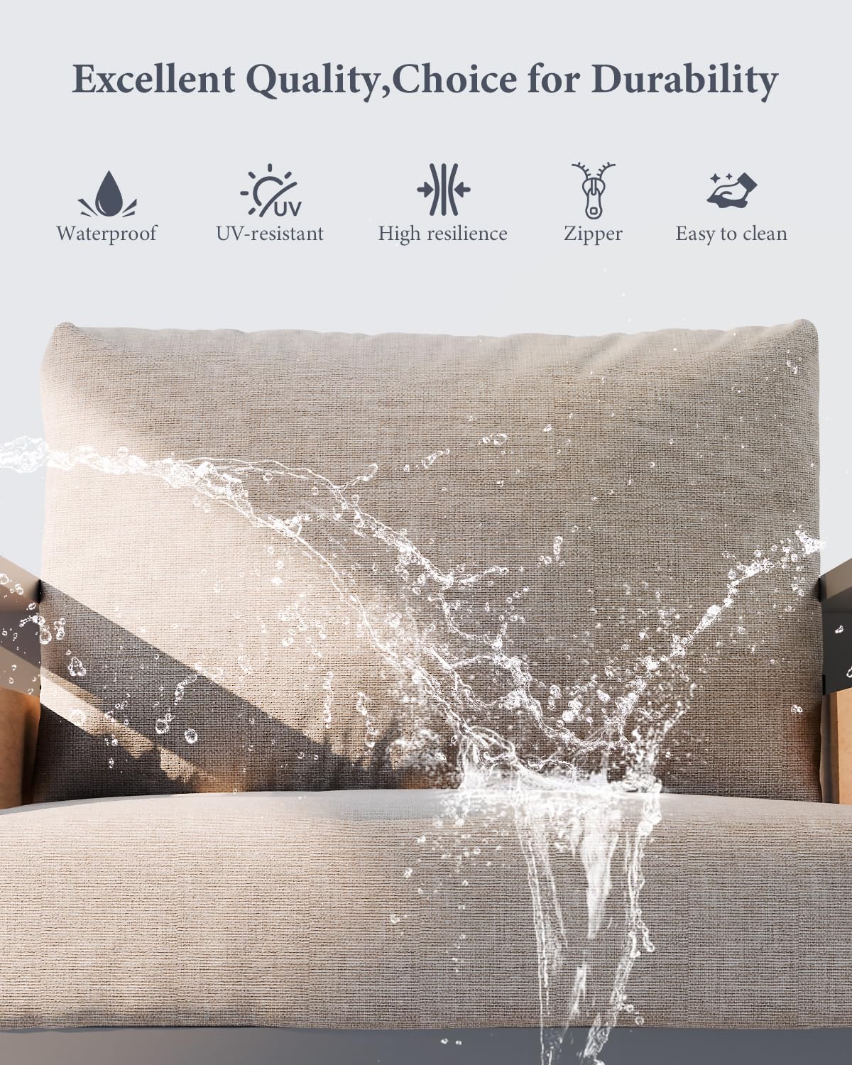 - ⛱️【5.5' Removable & Machine-washable Seat Cushion】 This outdoor furniture's cushion covers are removable and machine-washable, making cleaning effortless and keeping your set looking like new. Seat cushion of the set comes with high-density sponge, better for upper-body support, cushions are designed to be stable, keeping them from sliding around.
