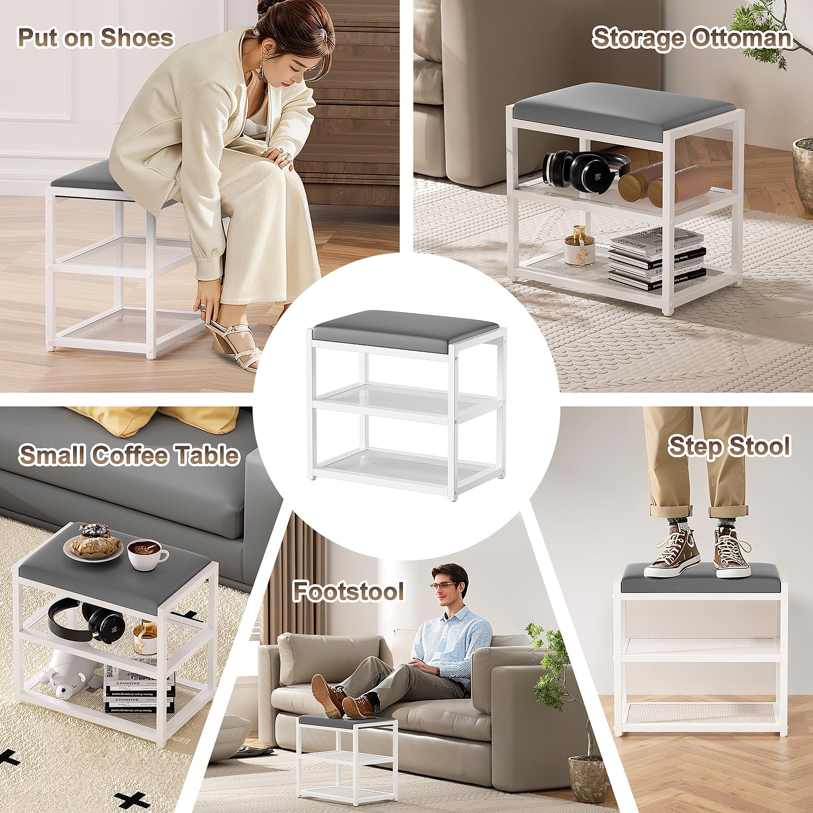ZHOOGE Small Ottoman with Storage, Vanity Stool Chair Faux Fur, Foot Ottoman, Square Makeup Stool for Small Spaces, Living Room, Bedroom, Bathroom, Entryway, White