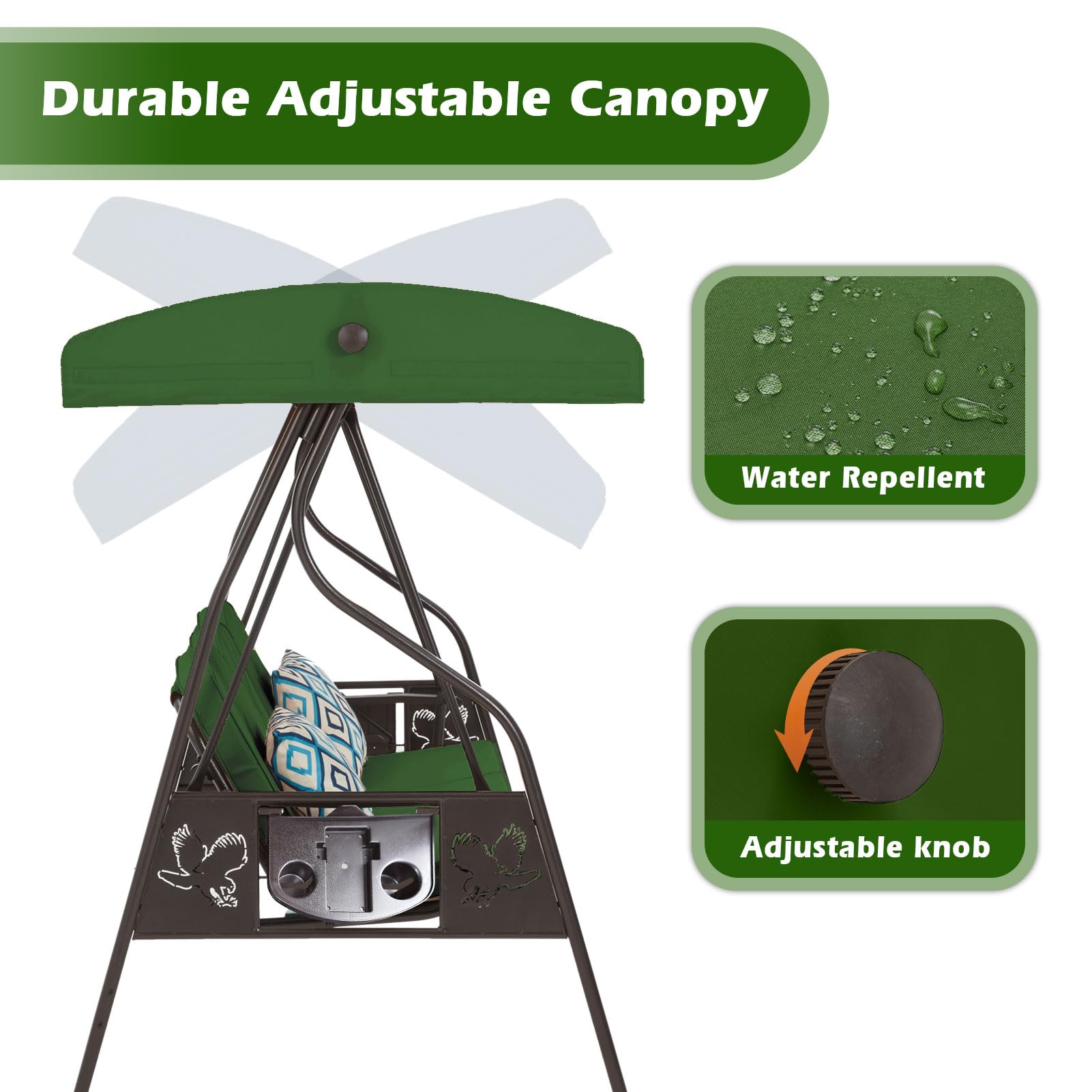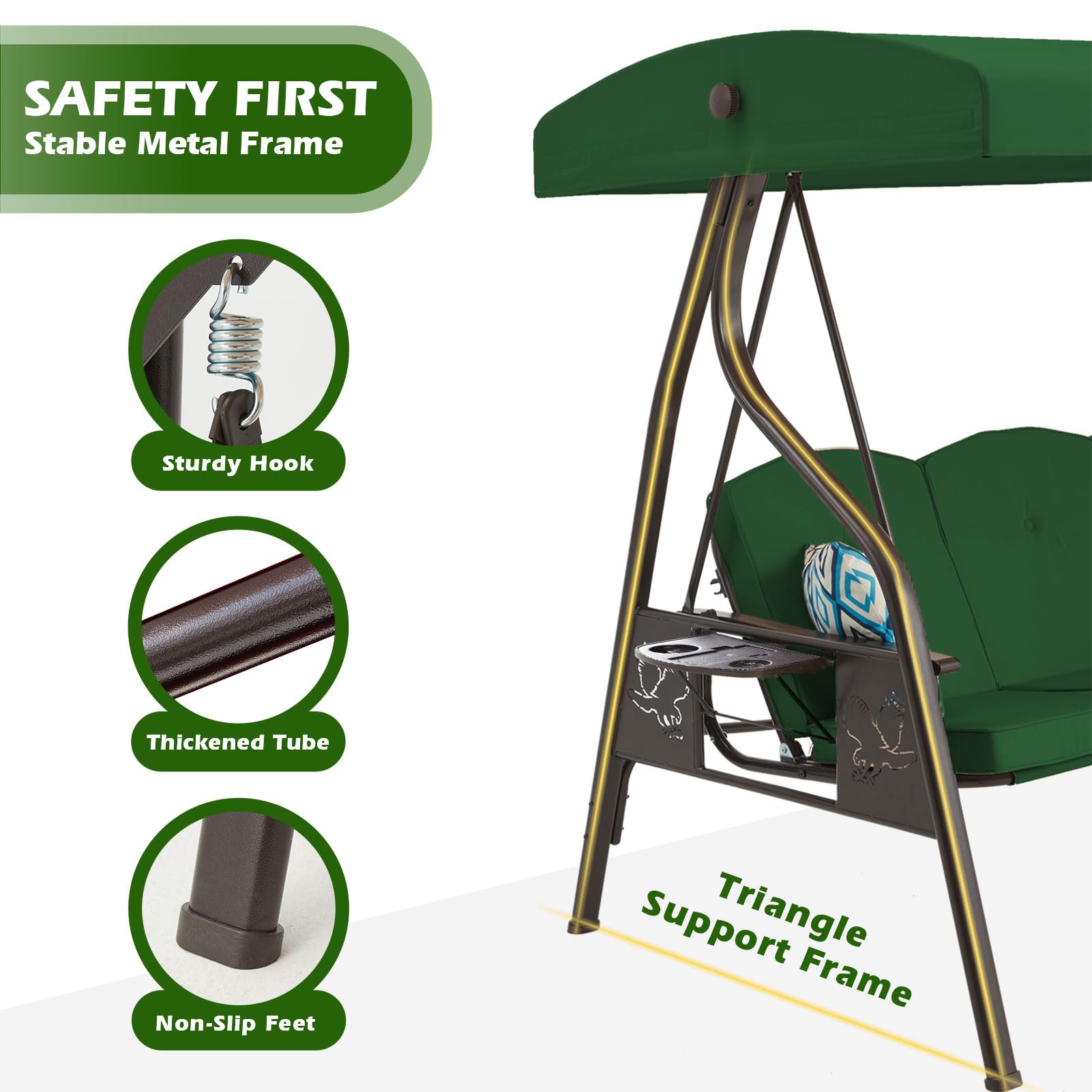 ZZW 3-Seat Outdoor Porch Swing with Stand Patio Swing with Canopy 2 in 1 Porch Swing Bed & Patio Swing Chair for Adult w/Extra Pillows and Cup Holder for Yard(Green)